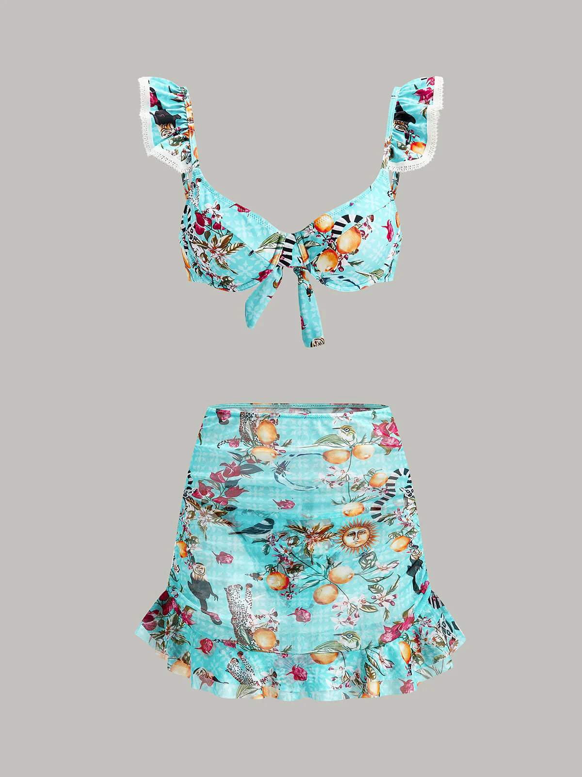 Sunshine Charm Bikini Set With Cover-Up Skirt