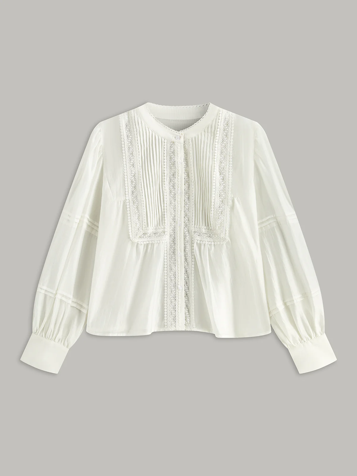 Embroidered Scallop Trim Puff Sleeve Bow Blouse