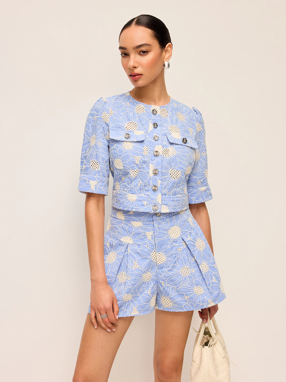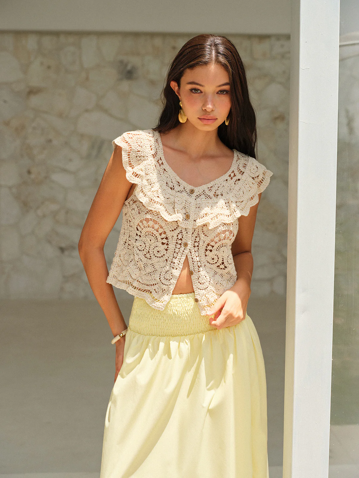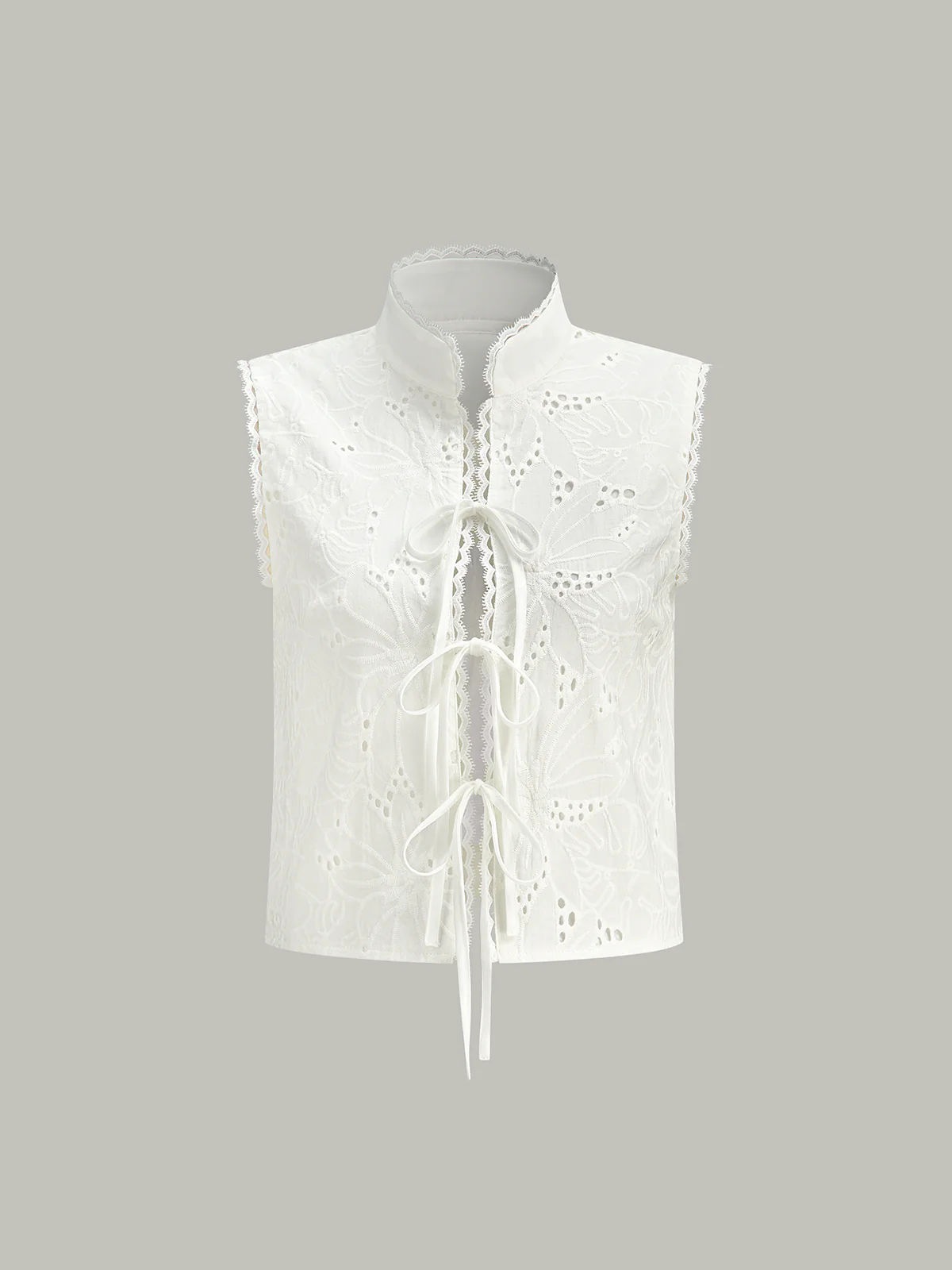 Scalloped Neckline Button-Front Eyelet Crop Top