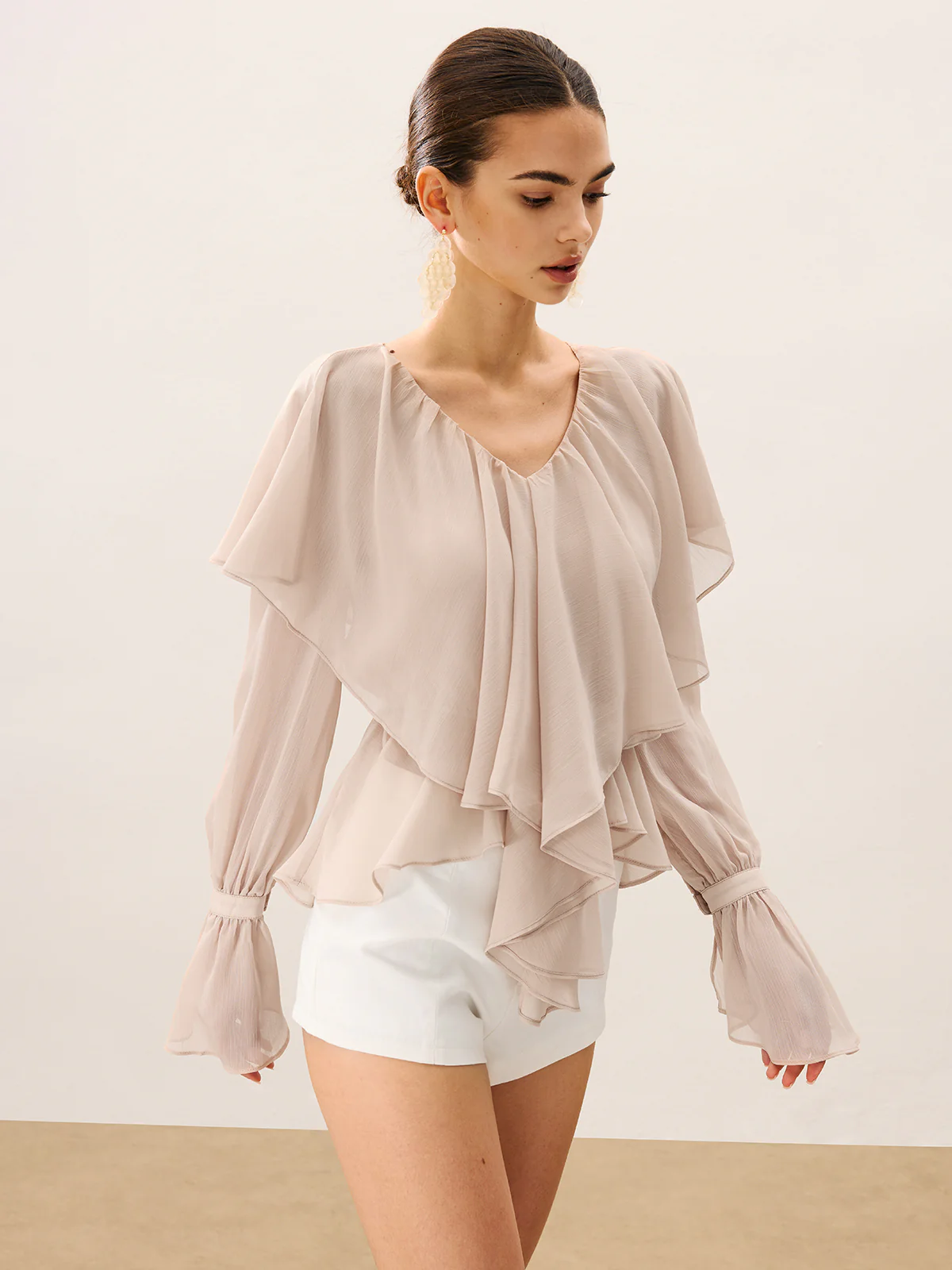 Semi-Sheer Ruffle Layered Chiffon Blouse