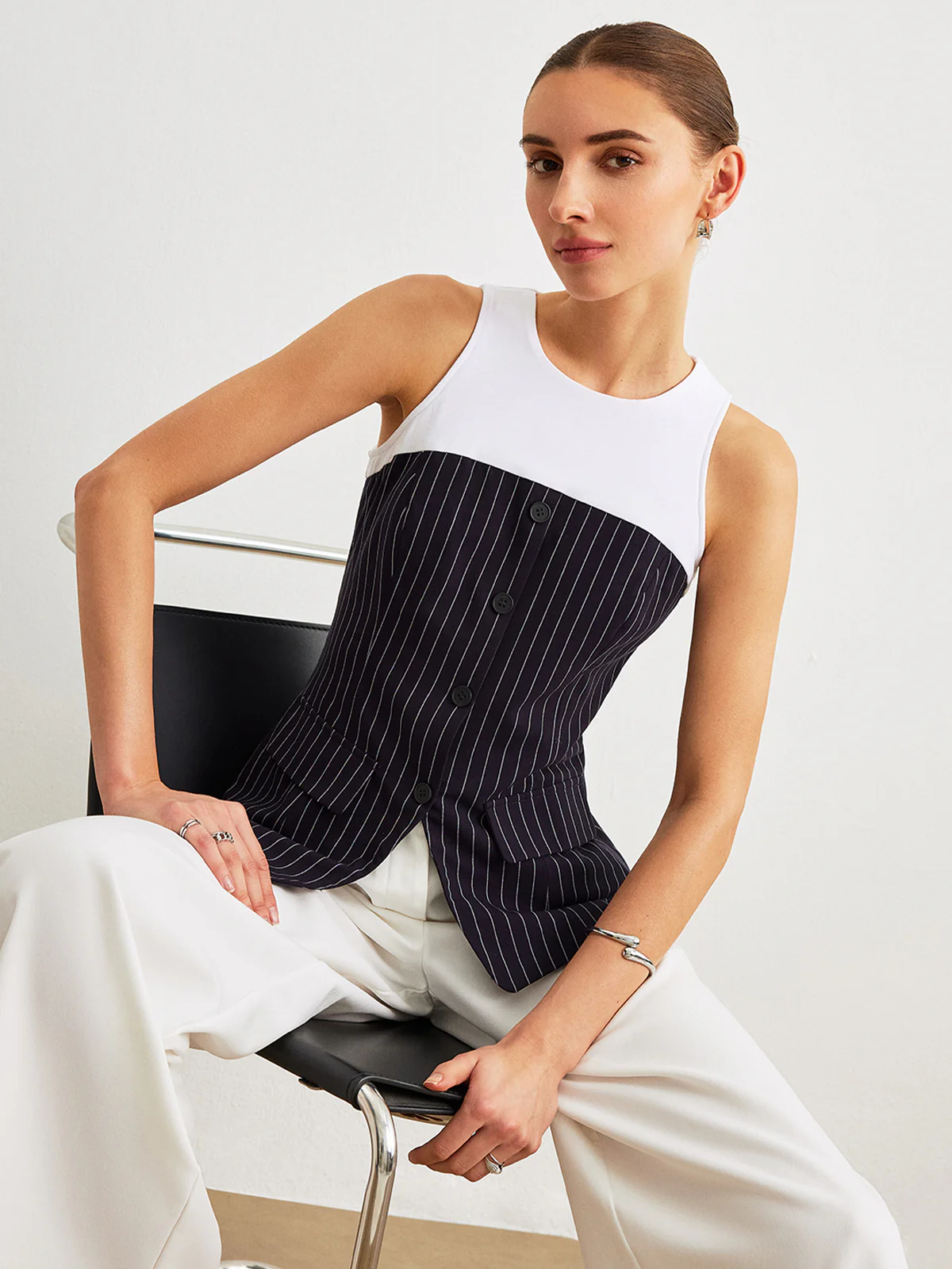 Crisscross Neckline Metal Detail Sleeveless Blouse