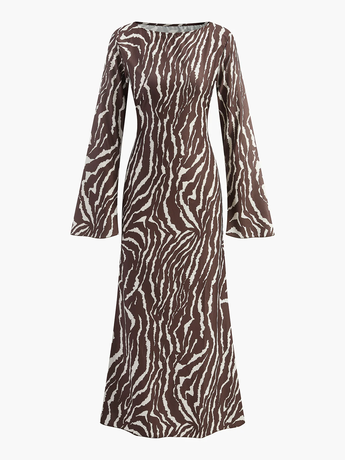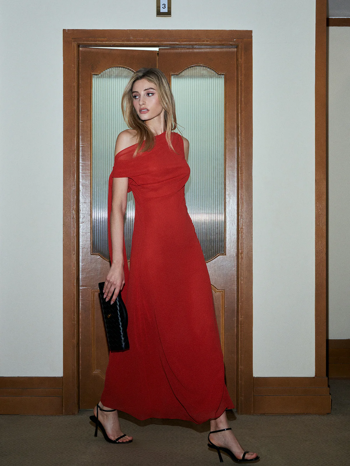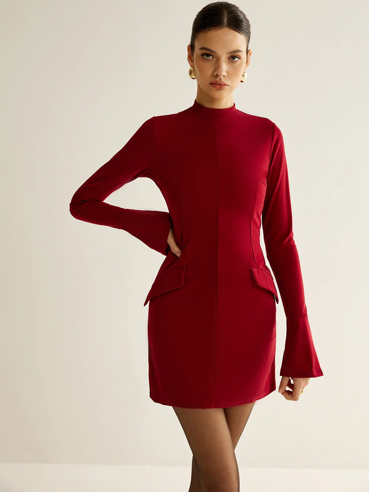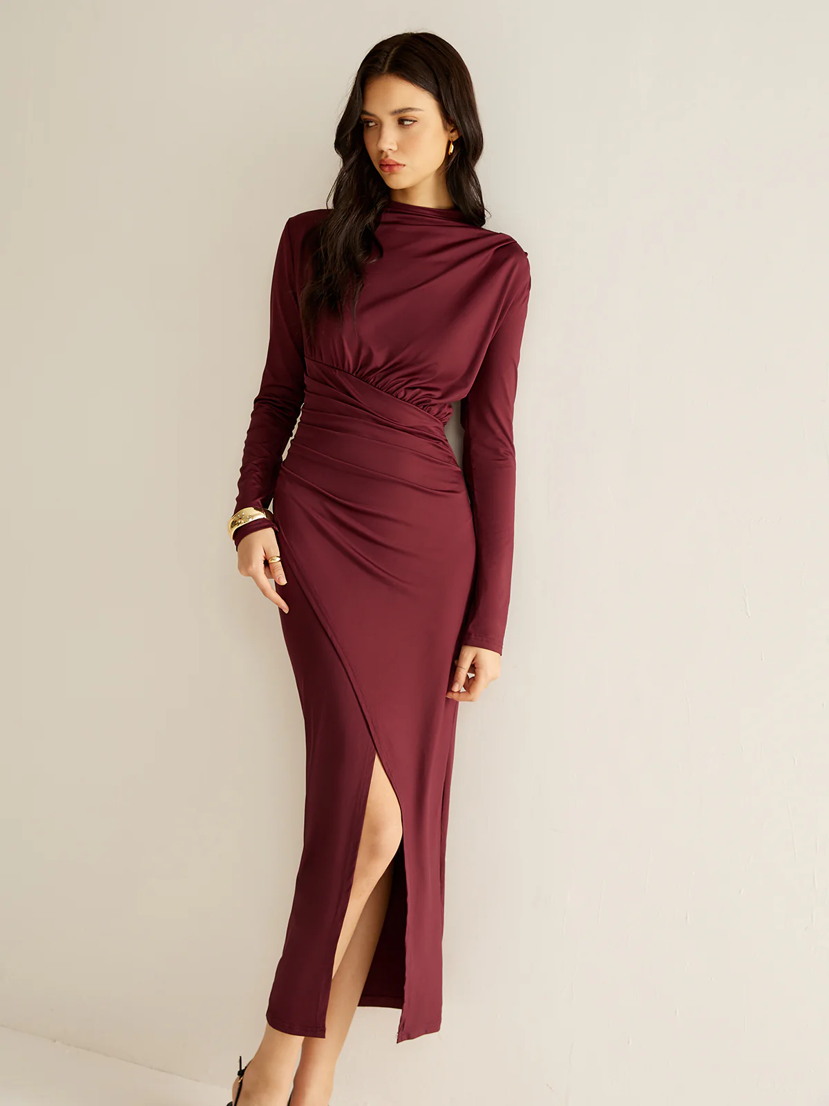 Off-Shoulder Ruched Bell-Sleeve Dress