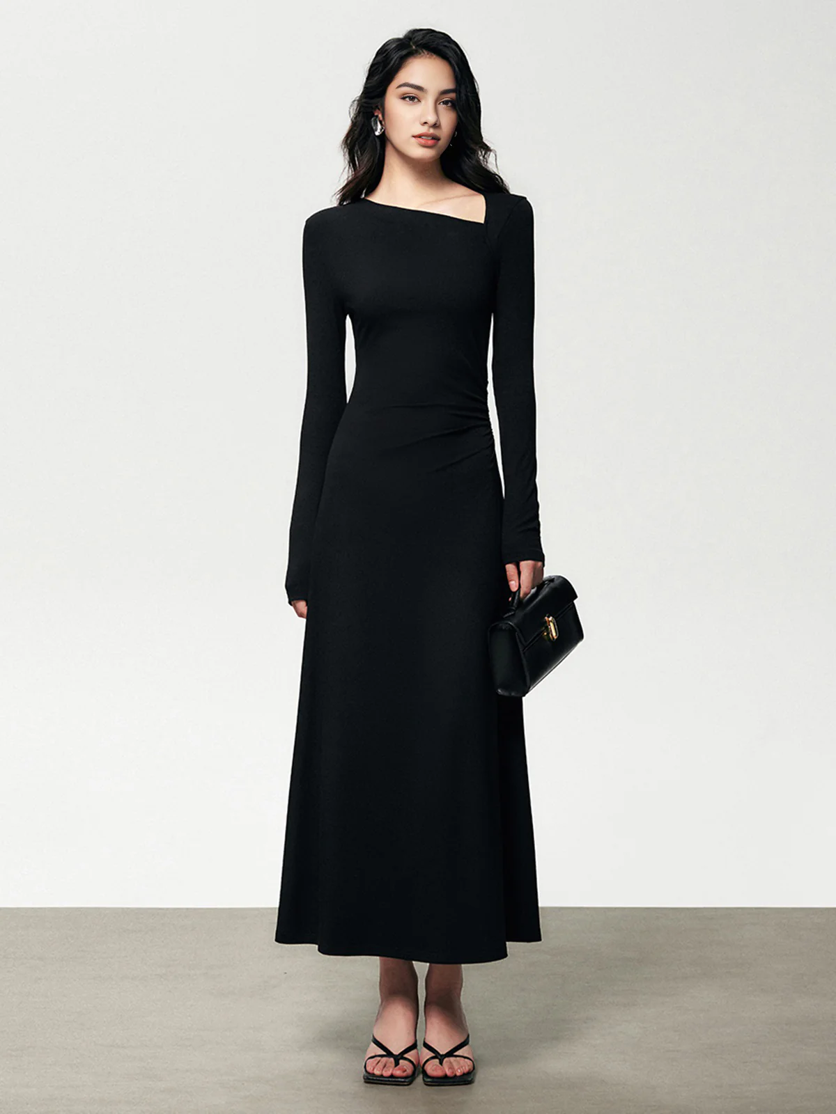 Ribbed Knit Asymmetric Long Sleeve Bodycon Long Dress