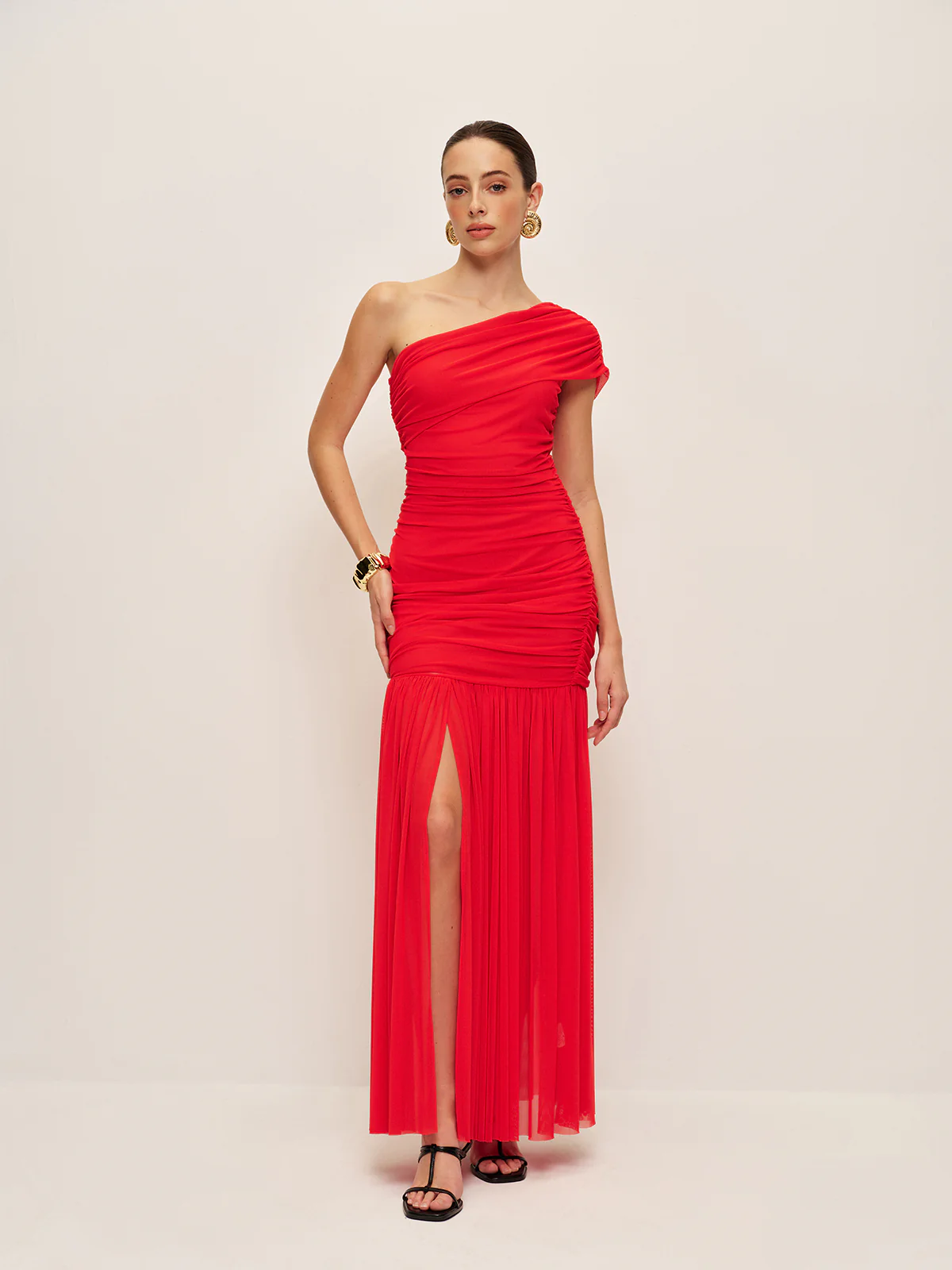 Semi-Sheer Chiffon Ruffled Sleeves Draped Wrap Dress