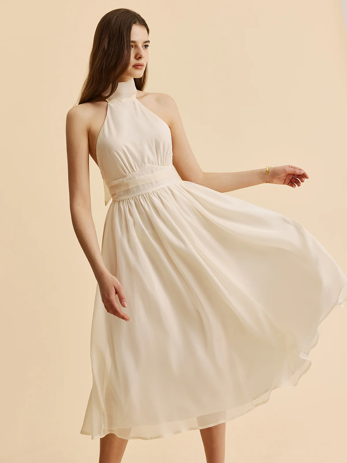 Halter Adjustable Straps Zipper V-Neck Long Dress
