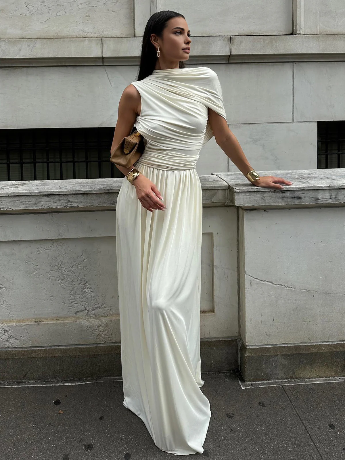 Asymmetry Pleat Sleeveless Long Dress