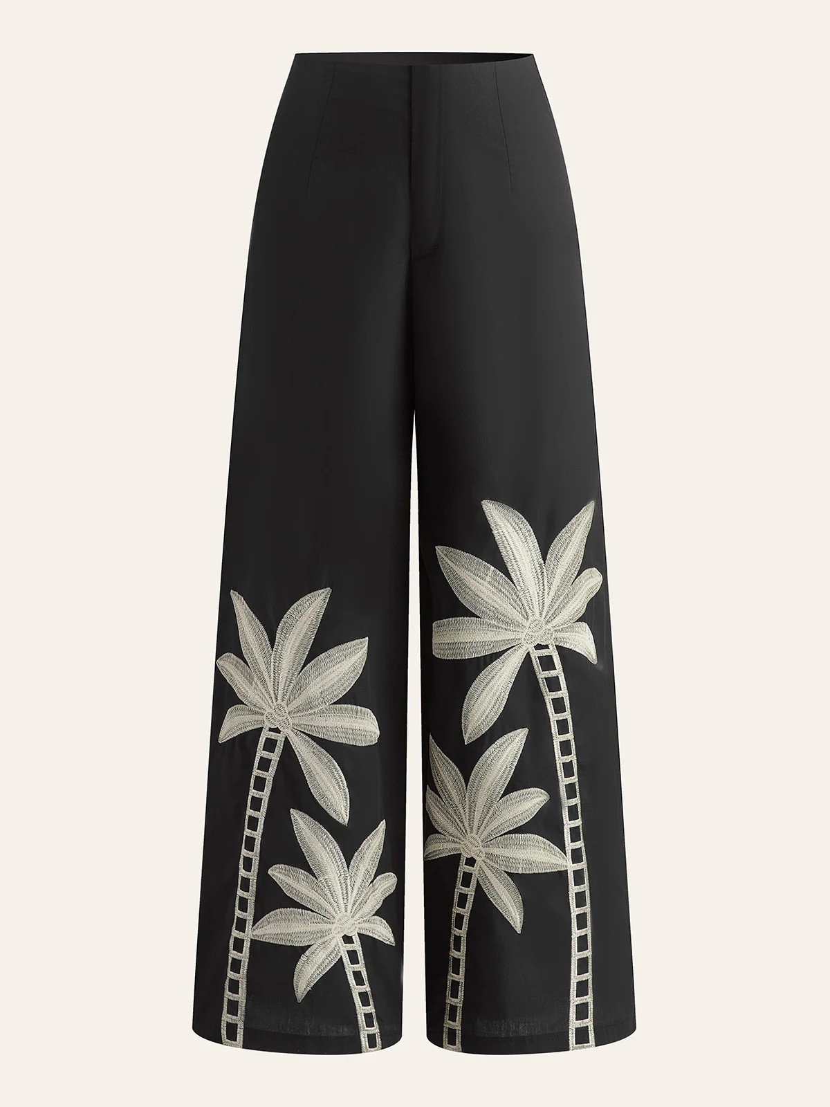 Embroidered High-Waist Wide-Leg Pants