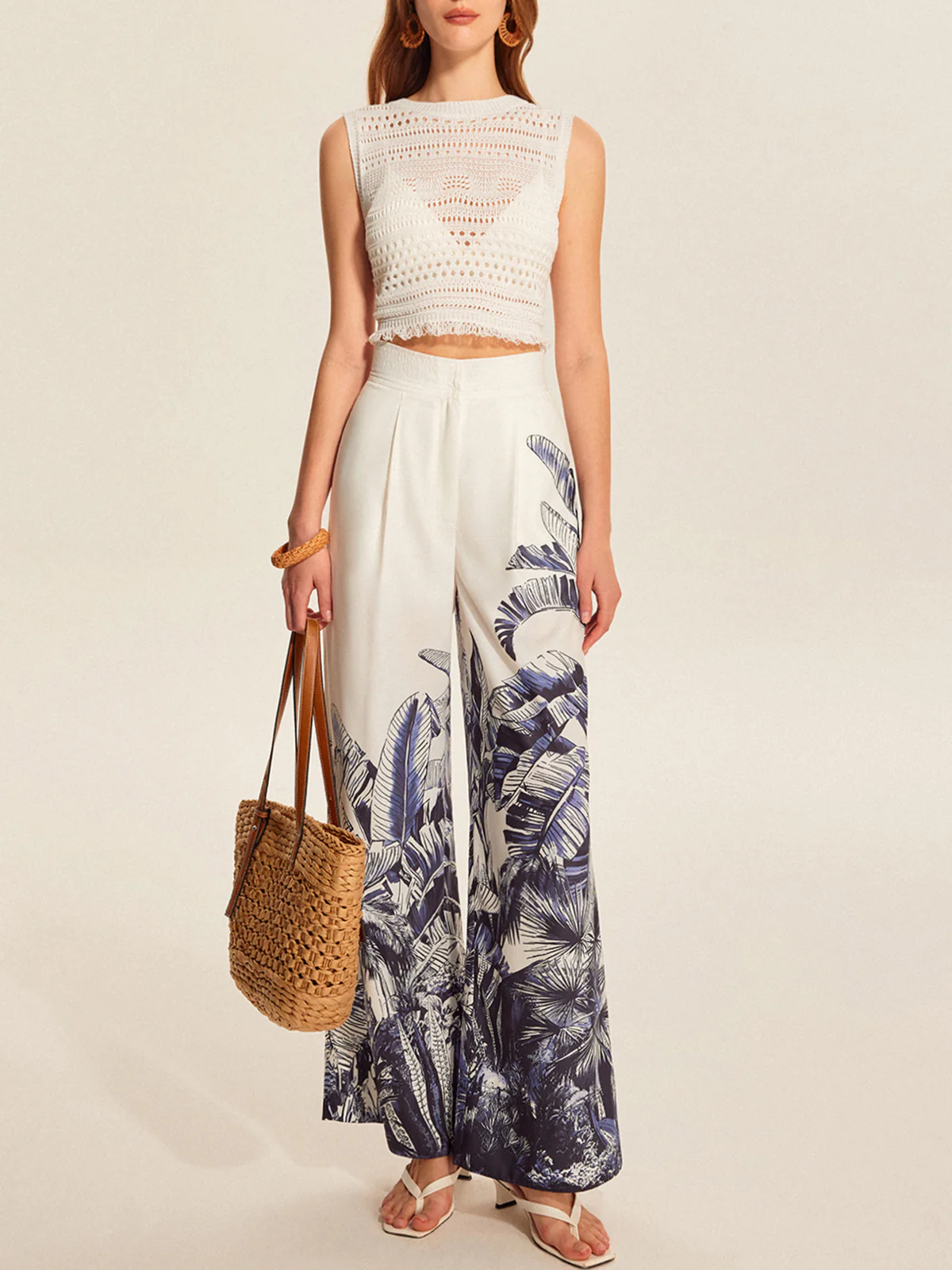 Boho Print Mid-Waist Wide-Leg Pants