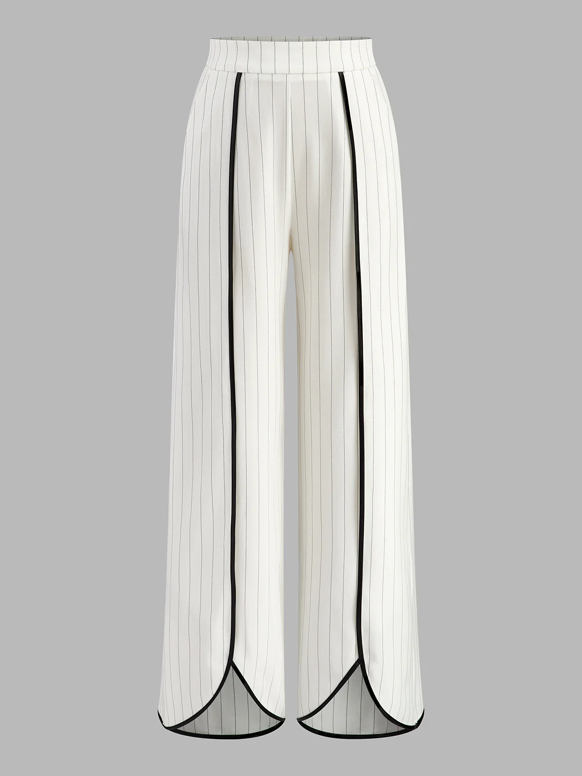 Pinstriped Contrast Trim Wide-Leg Pants