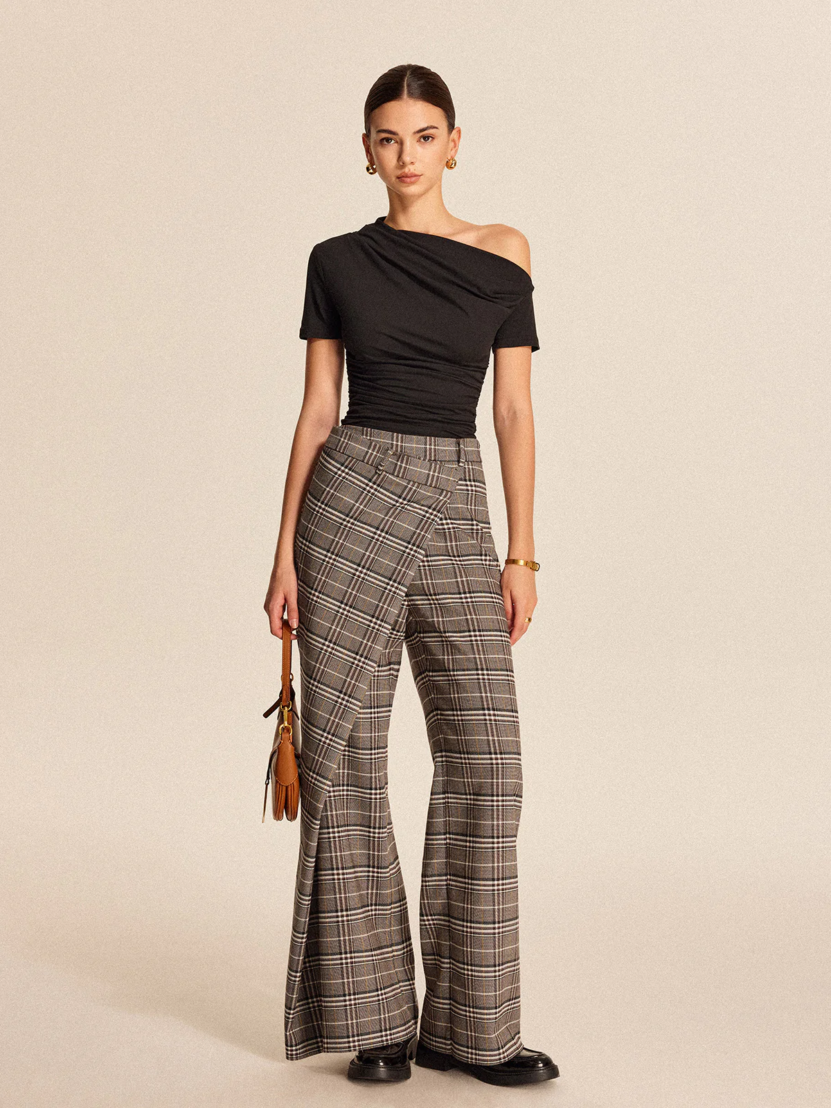 Plaid Asymmetrical Detail Mid Waist Pants
