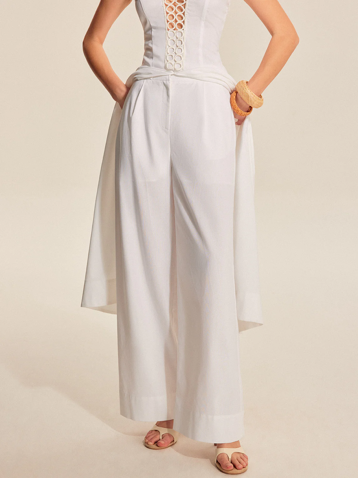 Cotton & Linen Pearl-Tie Mid-Waisted Pants