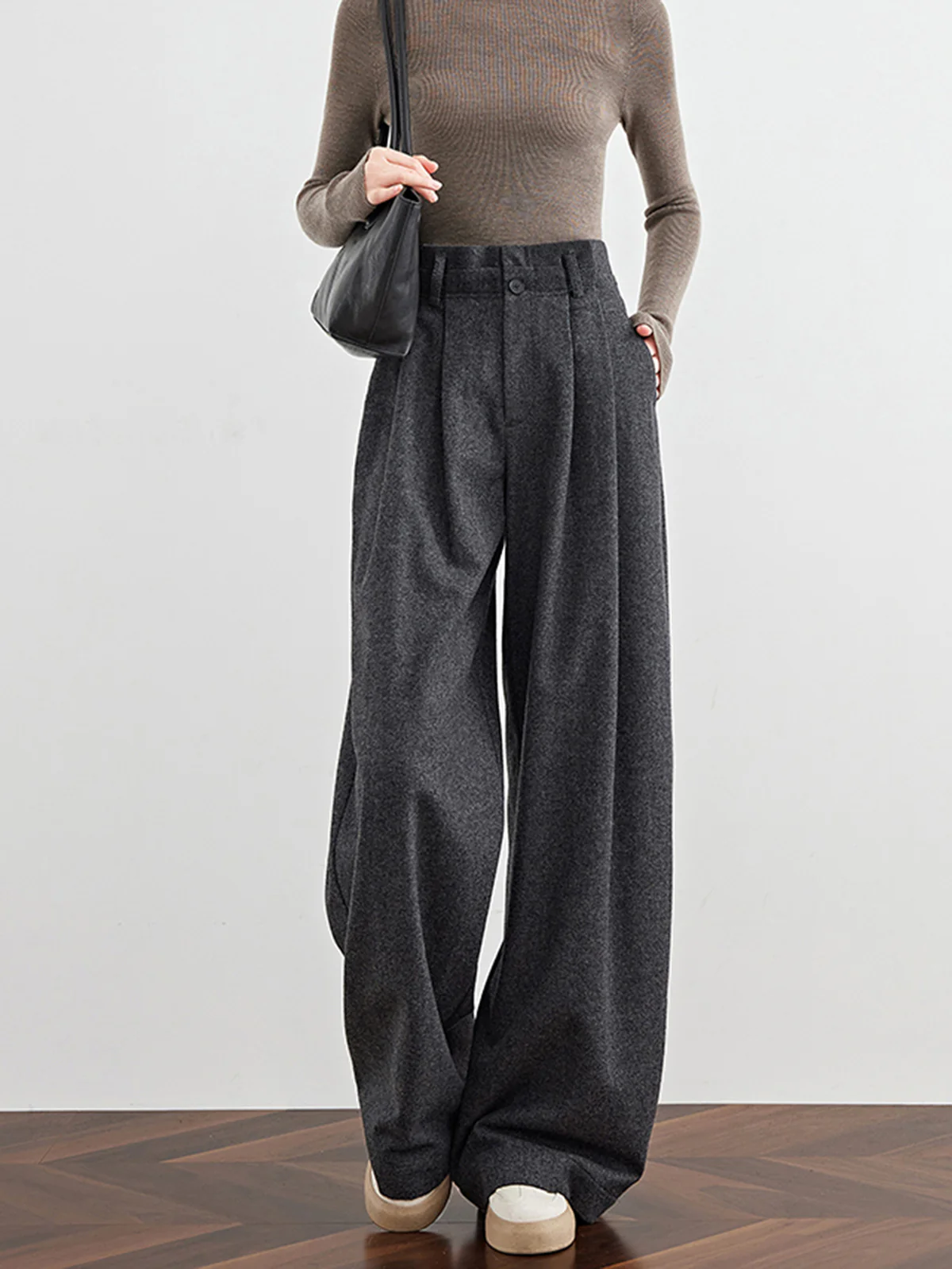 Pleated Design Wide-Leg Pants