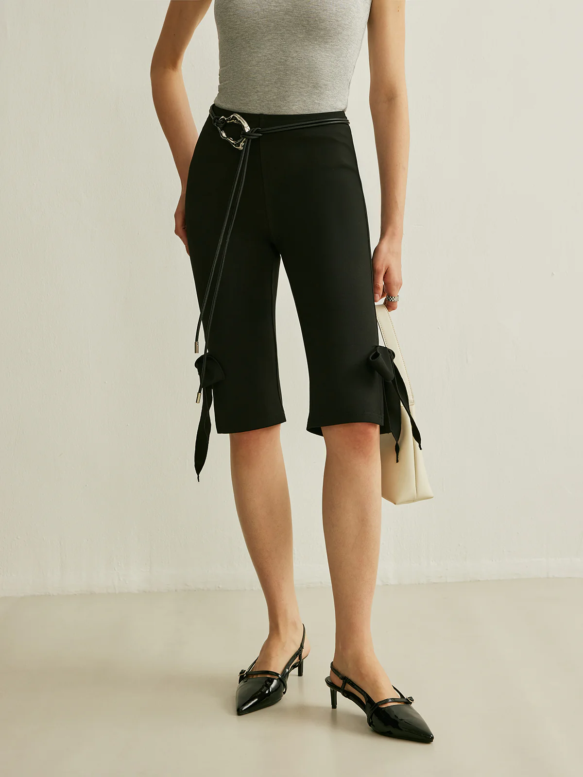 Bow Detail High-Waisted Capri Pants