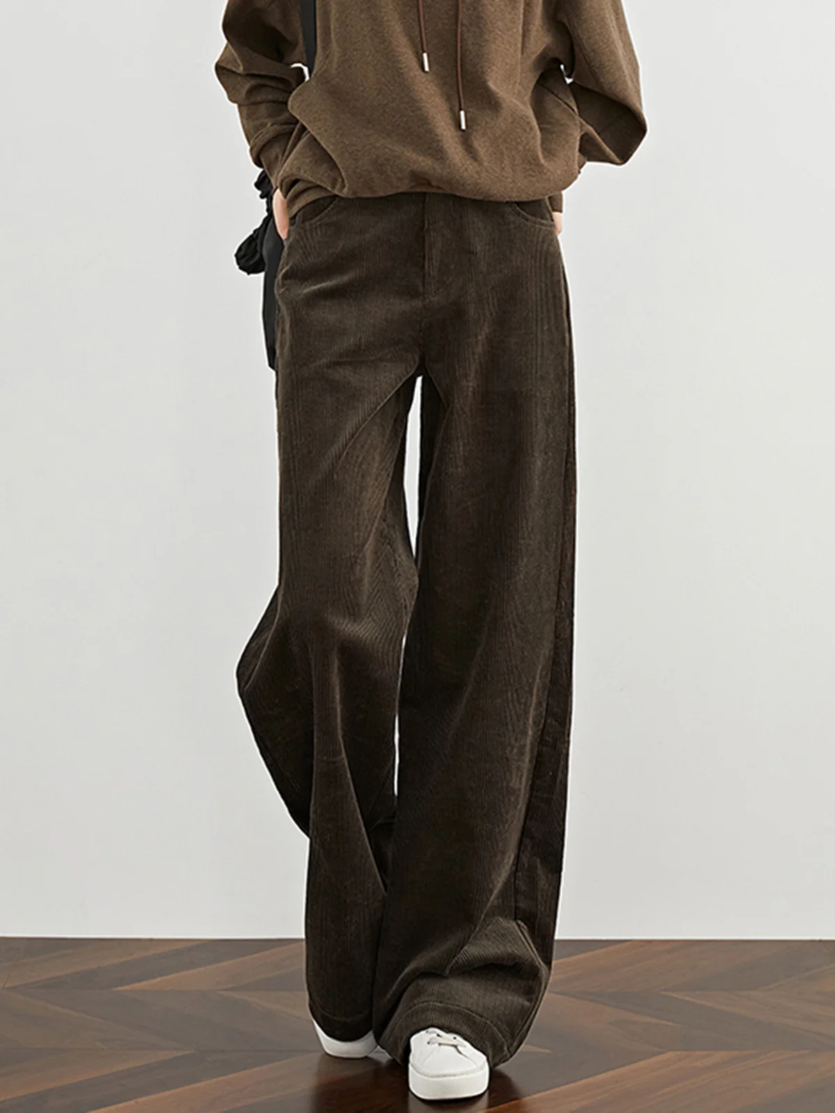 High-Waist Corduroy Draped Pants