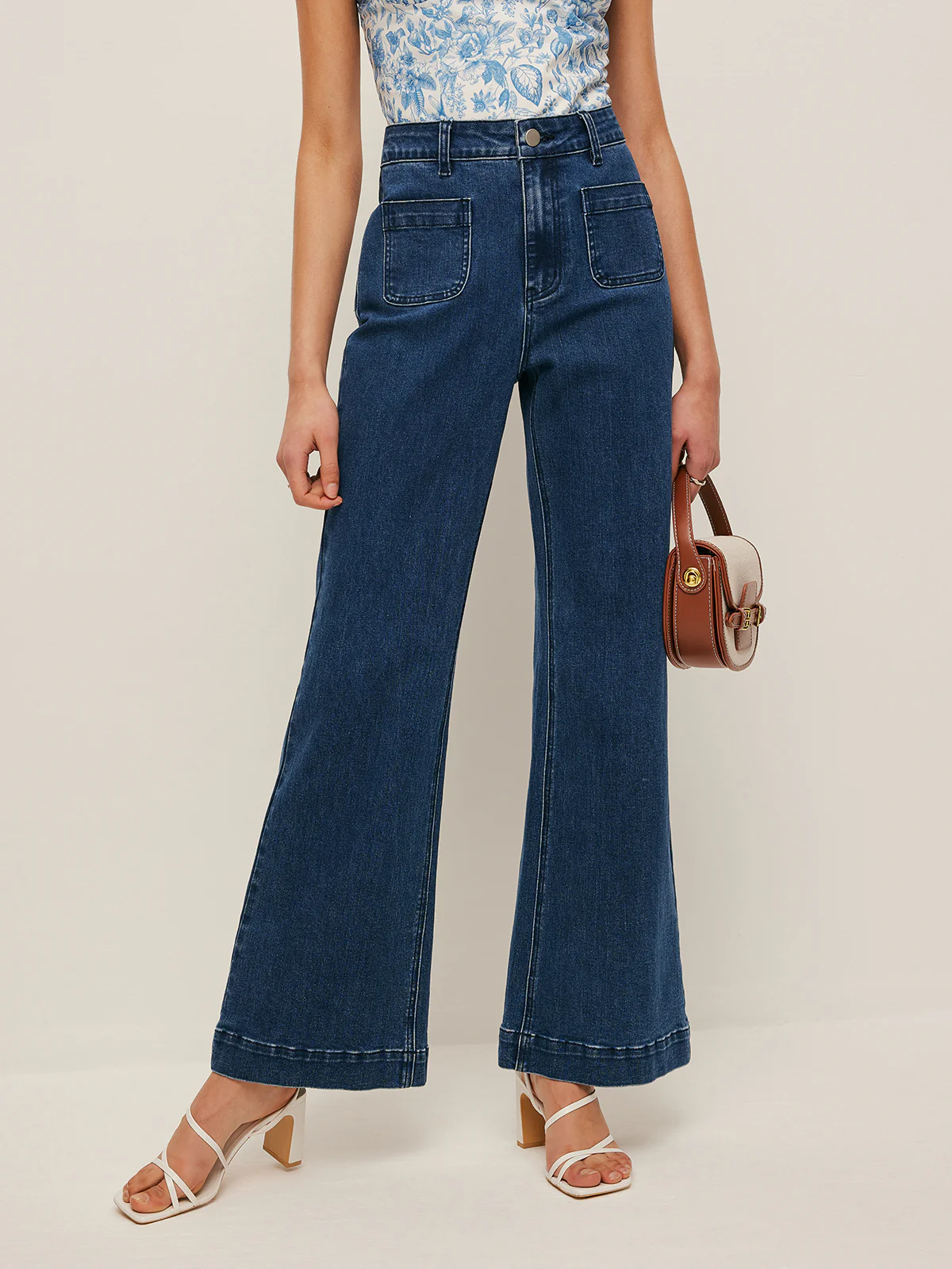 High-Waist Pocket Detail Wide-Leg Jeans