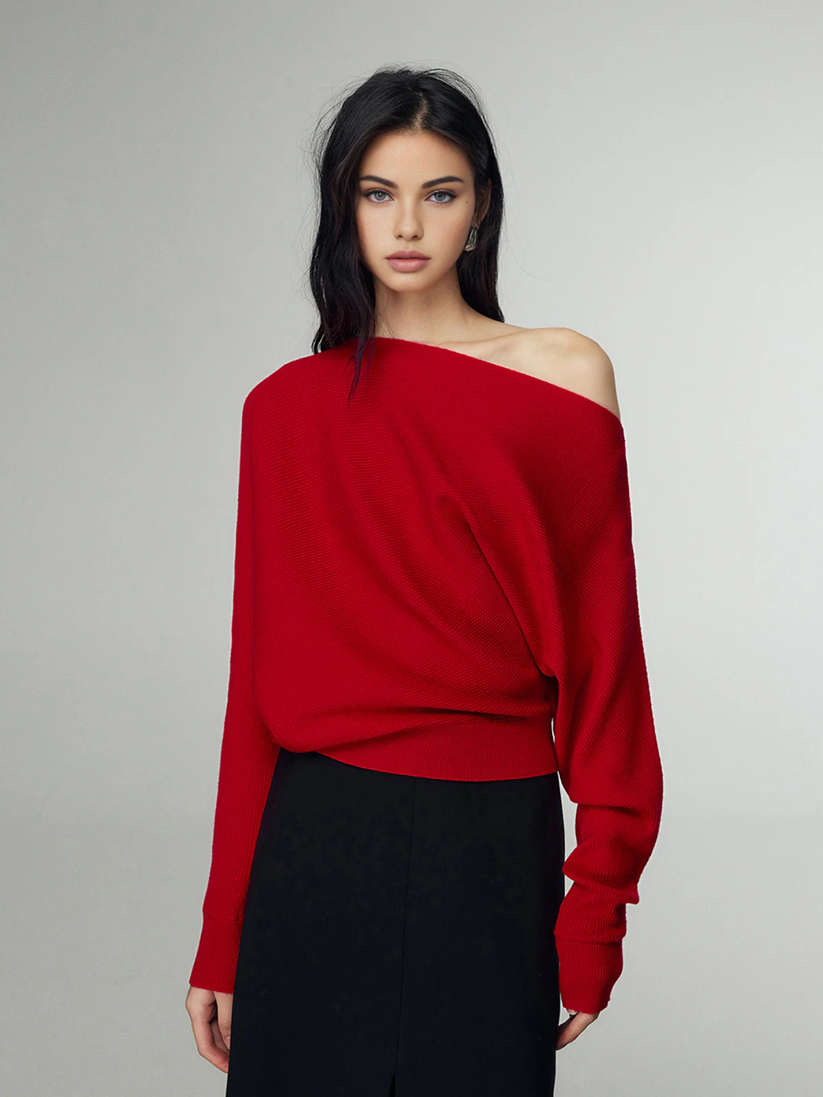 Wool-Blend Straight Neck Knit Top