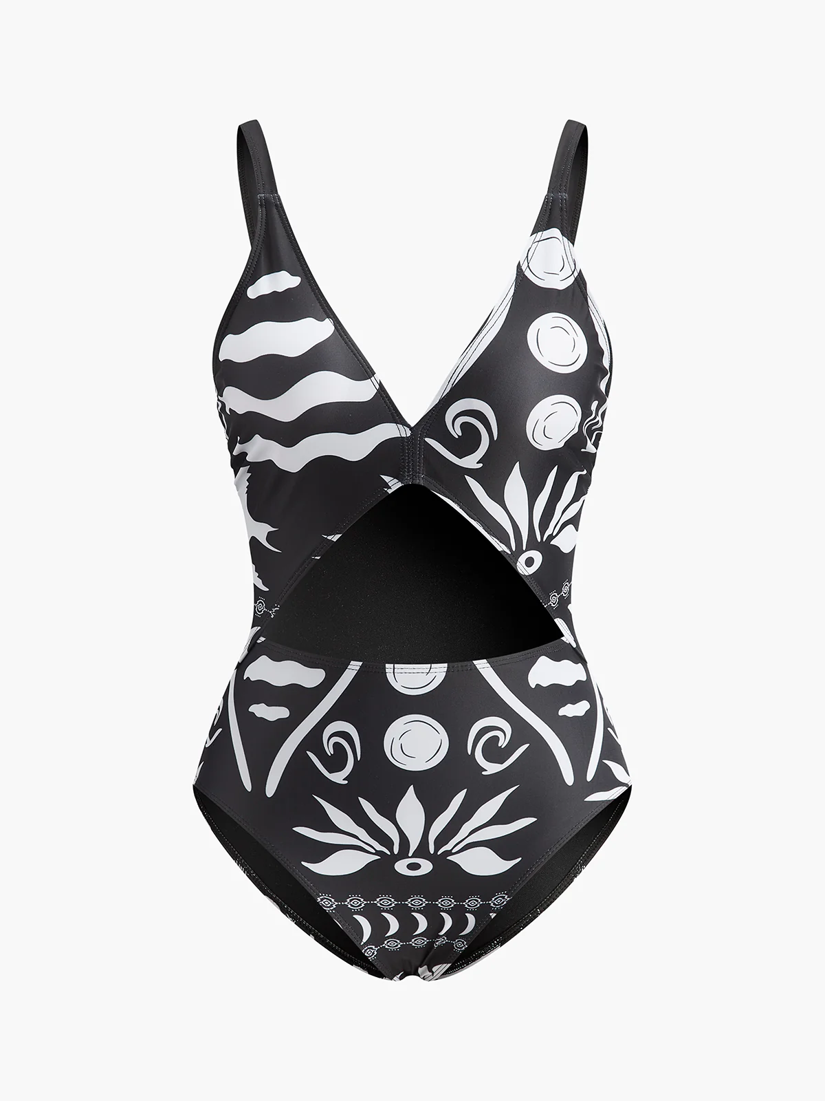 Printed Cutout V-Neck One-Piece Swimsuit
