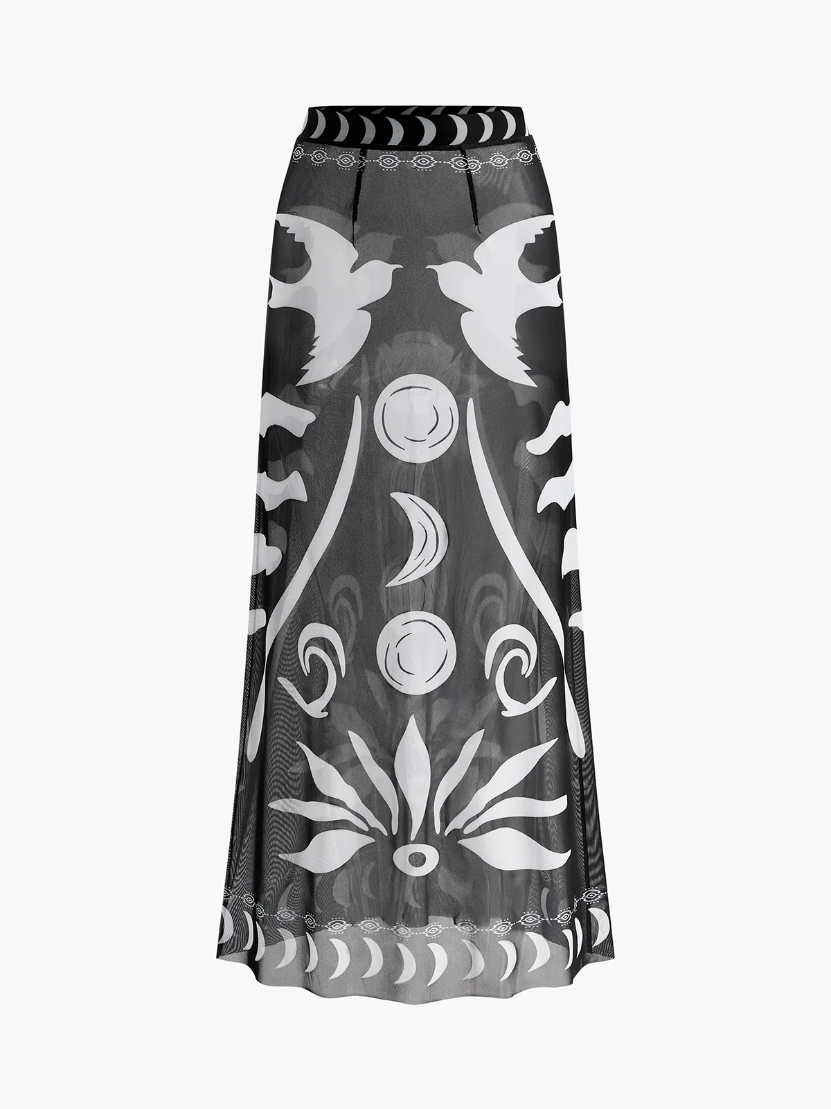 Sheer Printed Mesh Beach Cover-Up Skirt