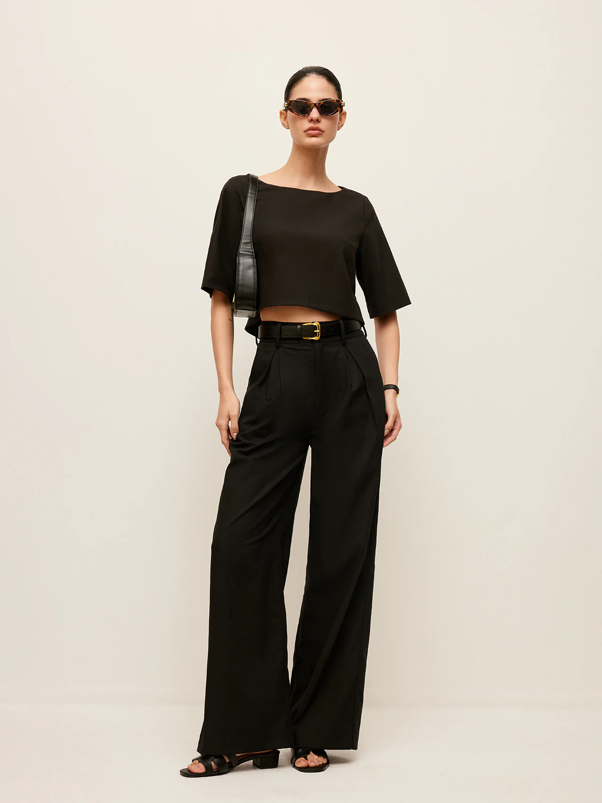 Graphic Print Crop Top With Wide-Leg Pants Set