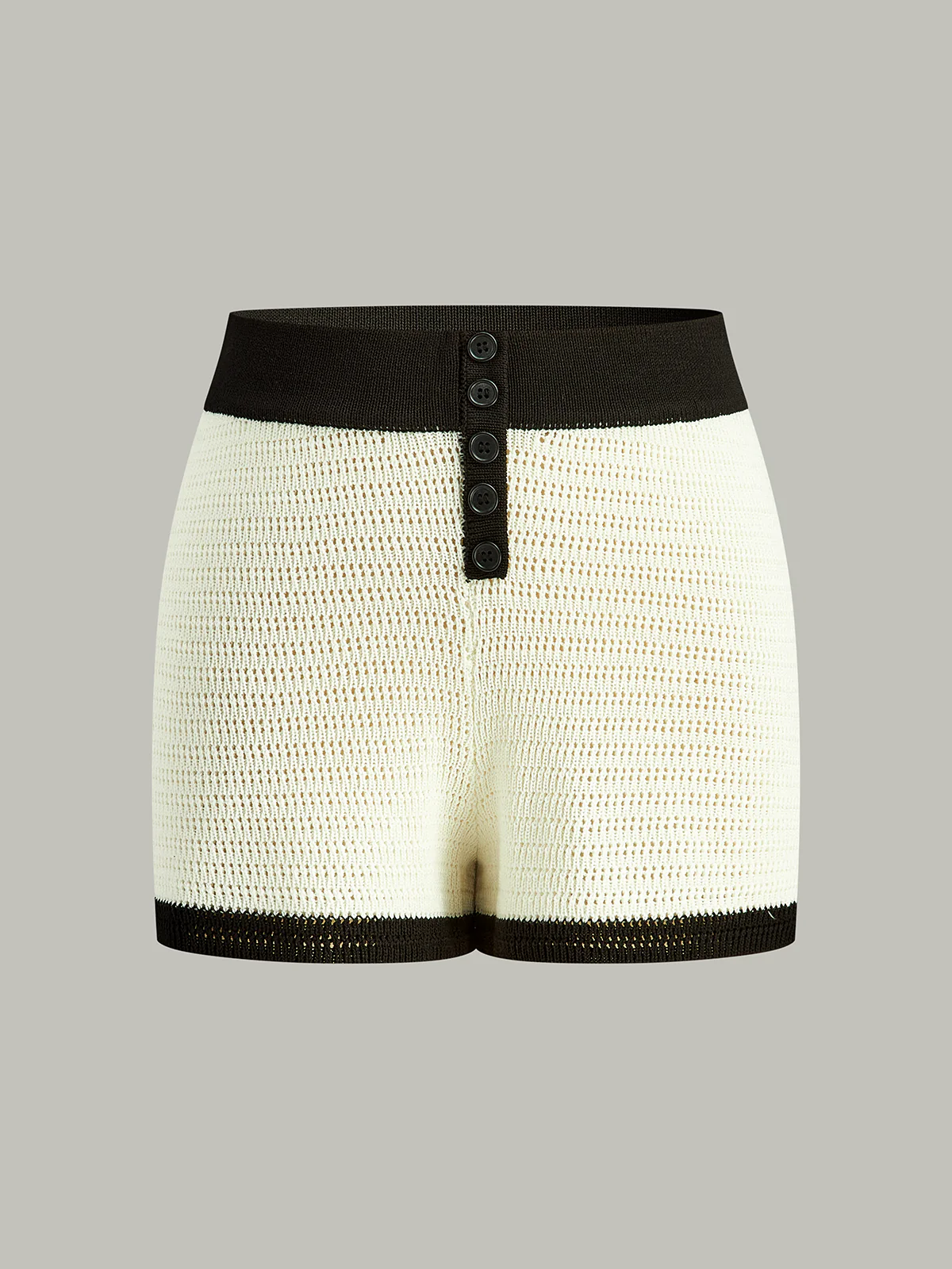 Contrast-Trimmed Polo Neck Top and Drawstring Straight-Leg Pants Set