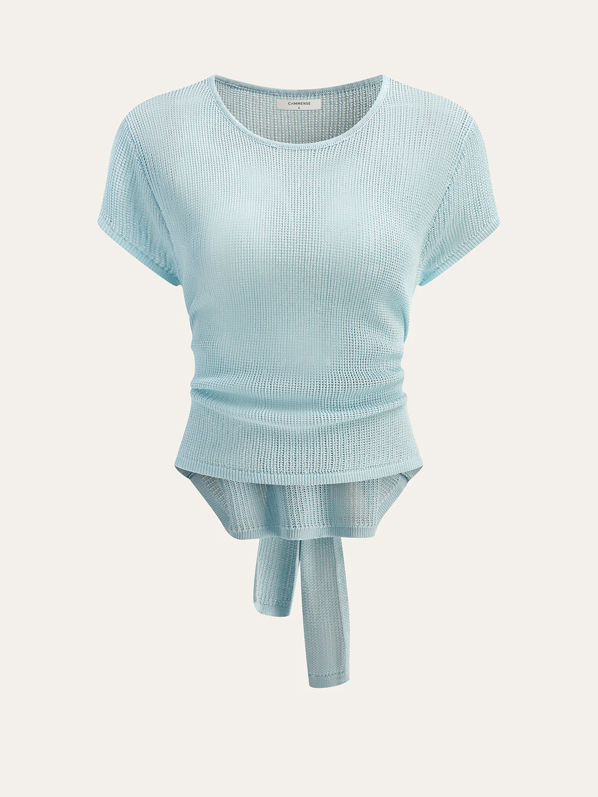 Waffle-Knit Top with Back Tie Detail