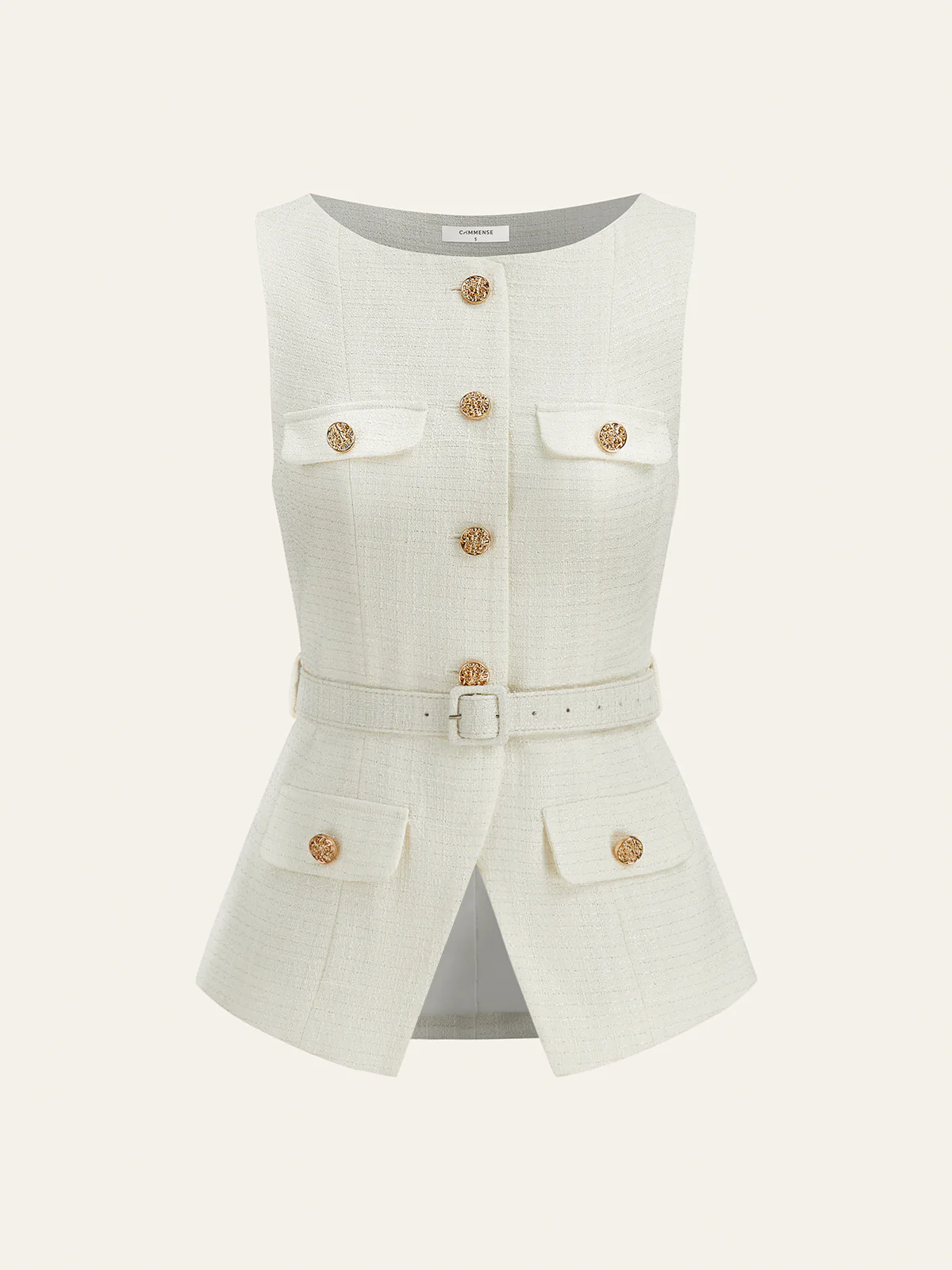 Belted Metal Button Sleeveless Vest