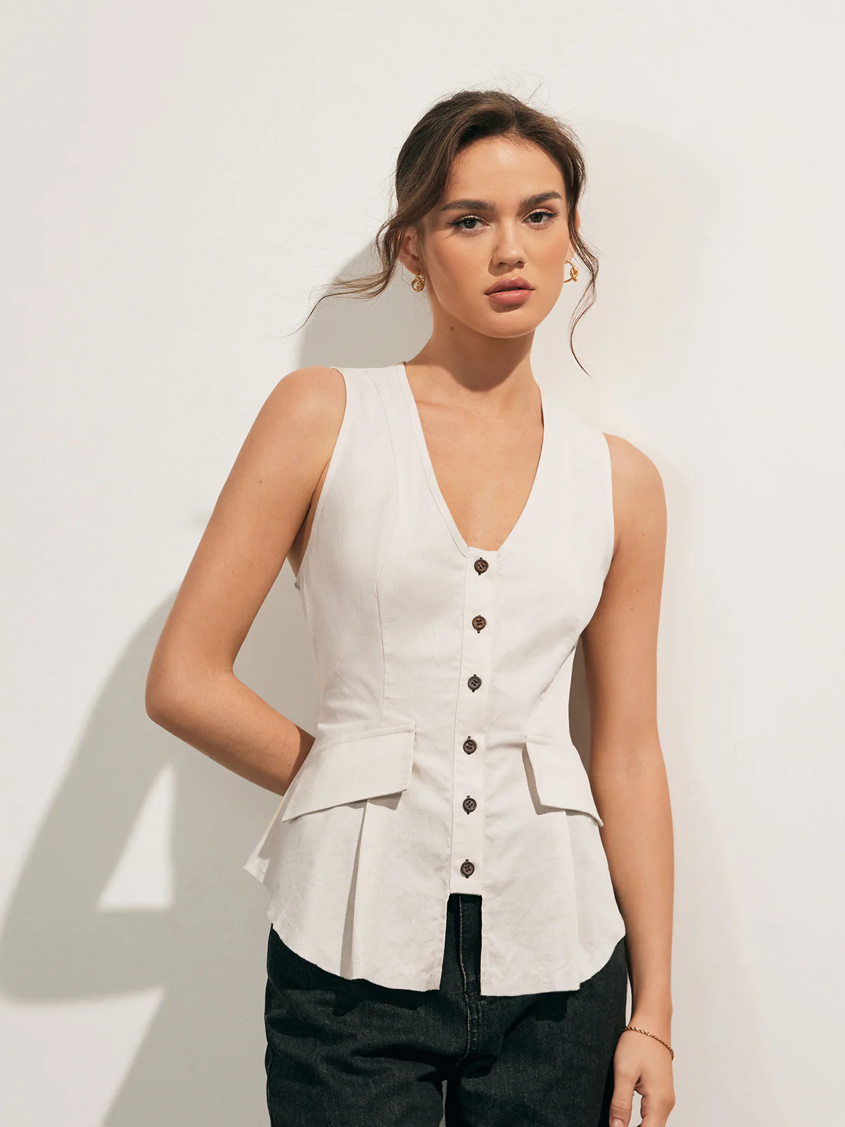 Linen Blends Raw Hem Button Up Vest