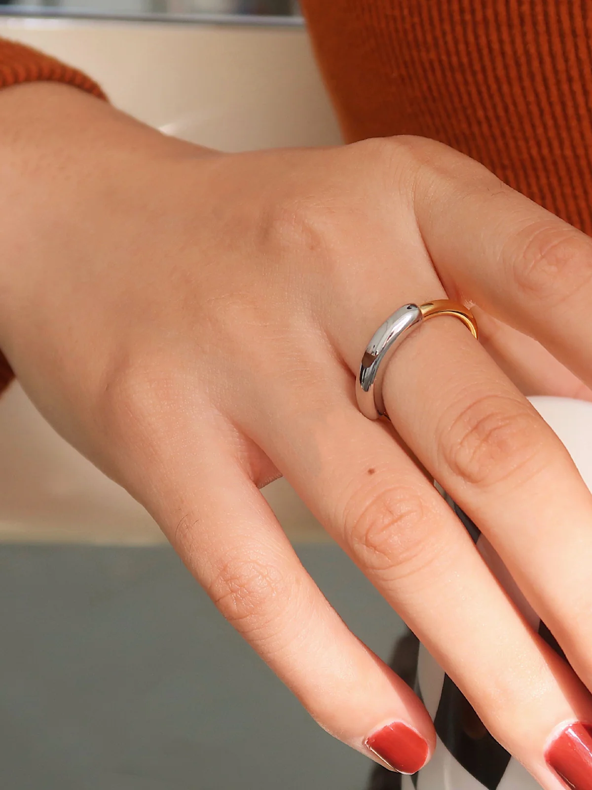 Two Tone Glossy Hoop Ring