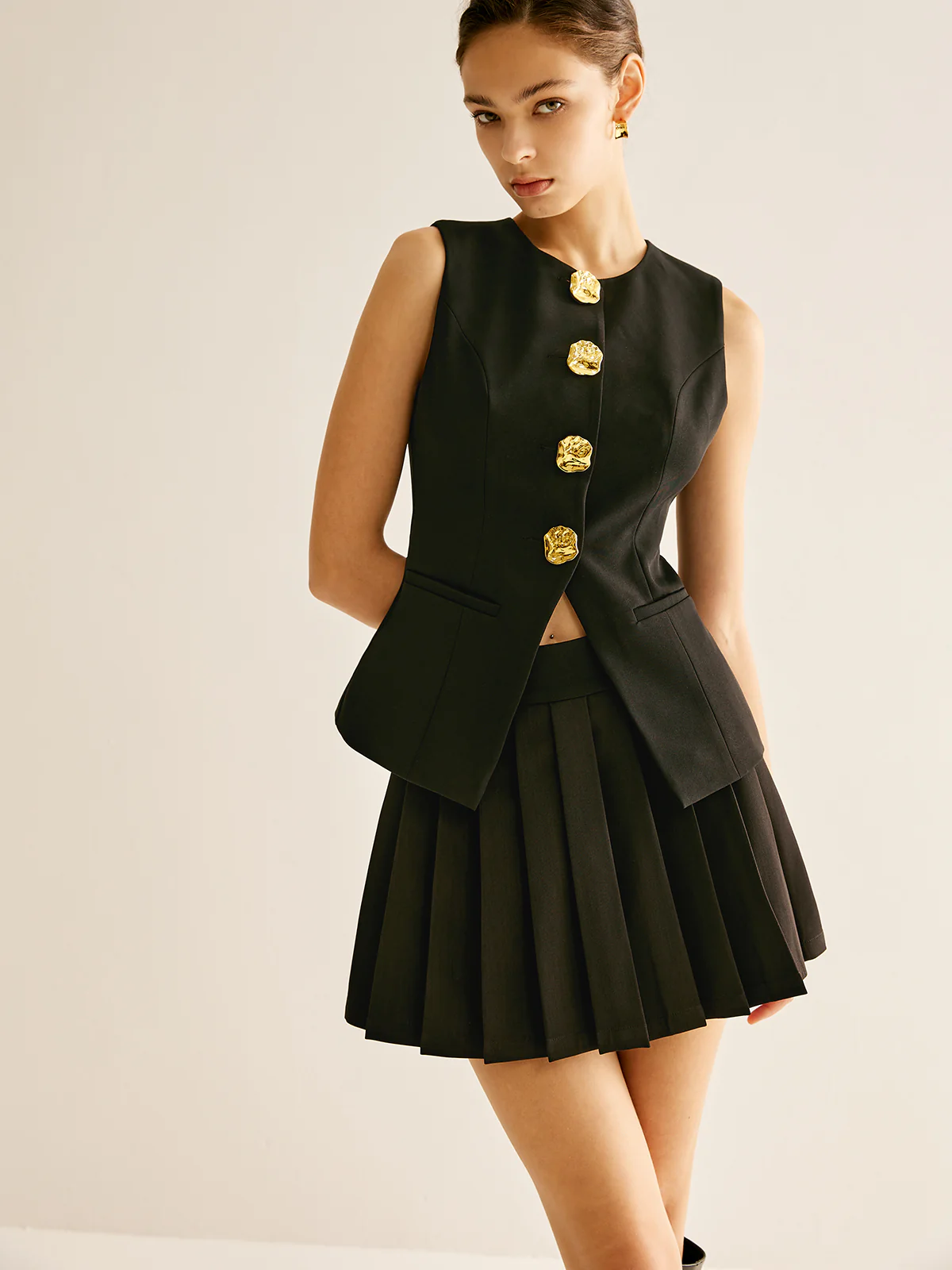 Button Split Cami Vest