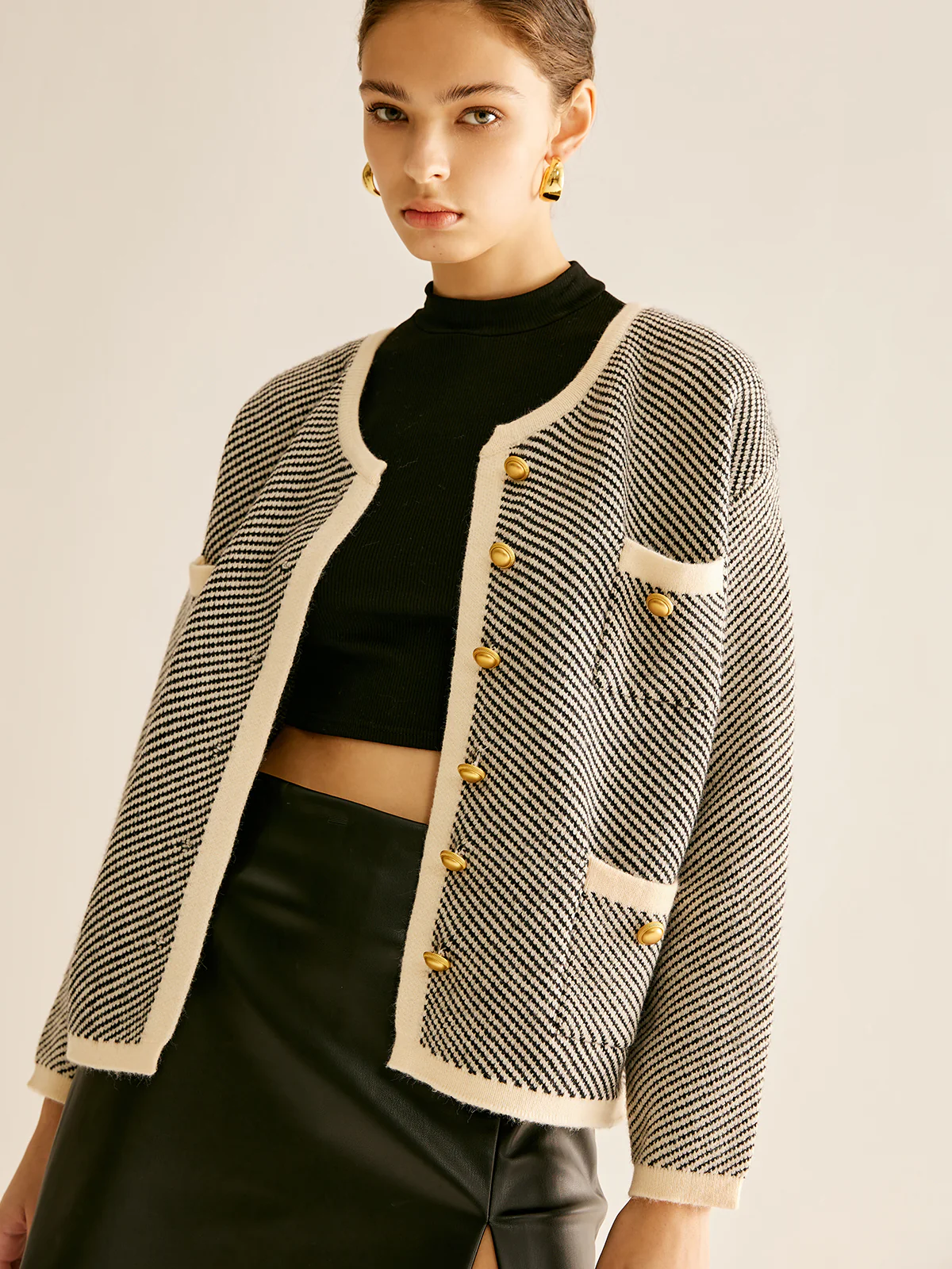 Contrast Trim Pockets Knit Outerwear