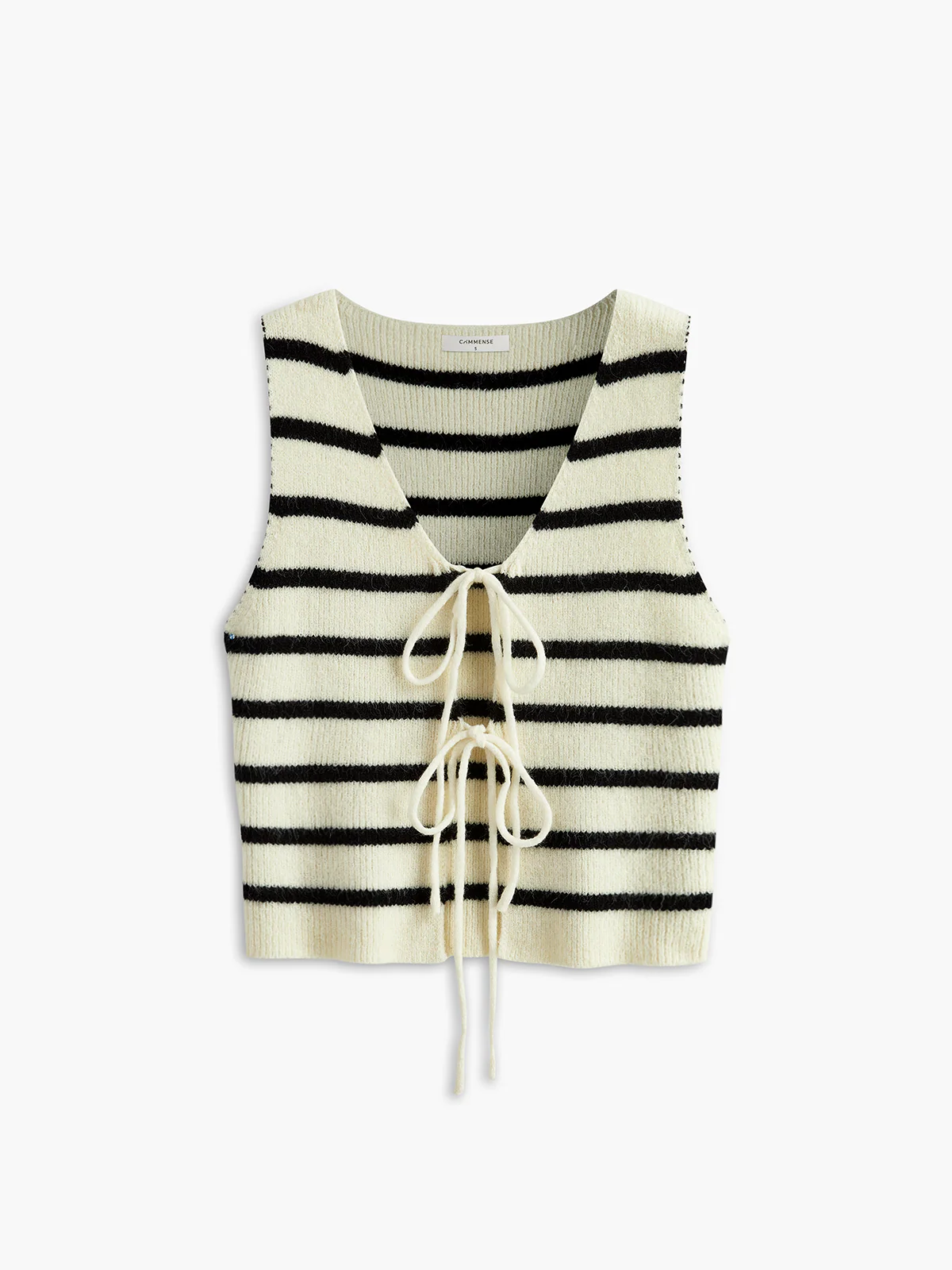 Contrast Piping Bow Slim Knit Top