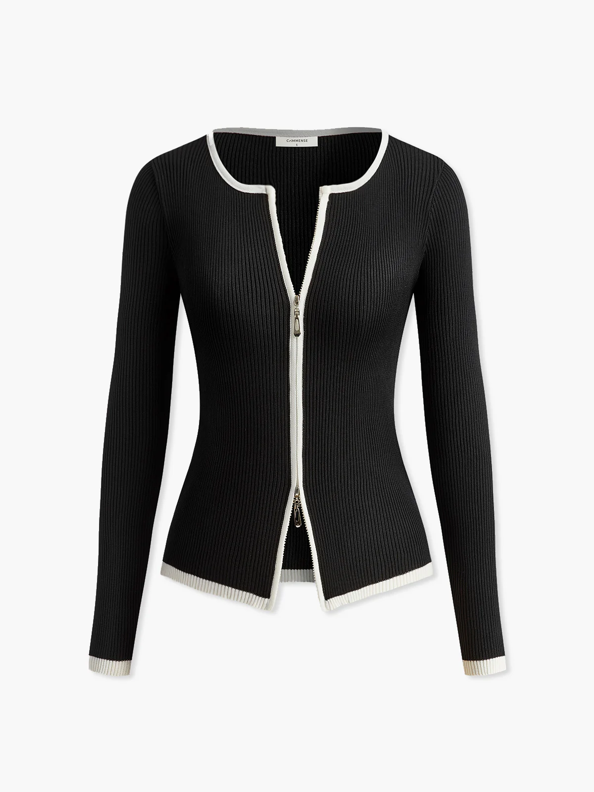 Contrast Trim Double-Zipper Knit Top
