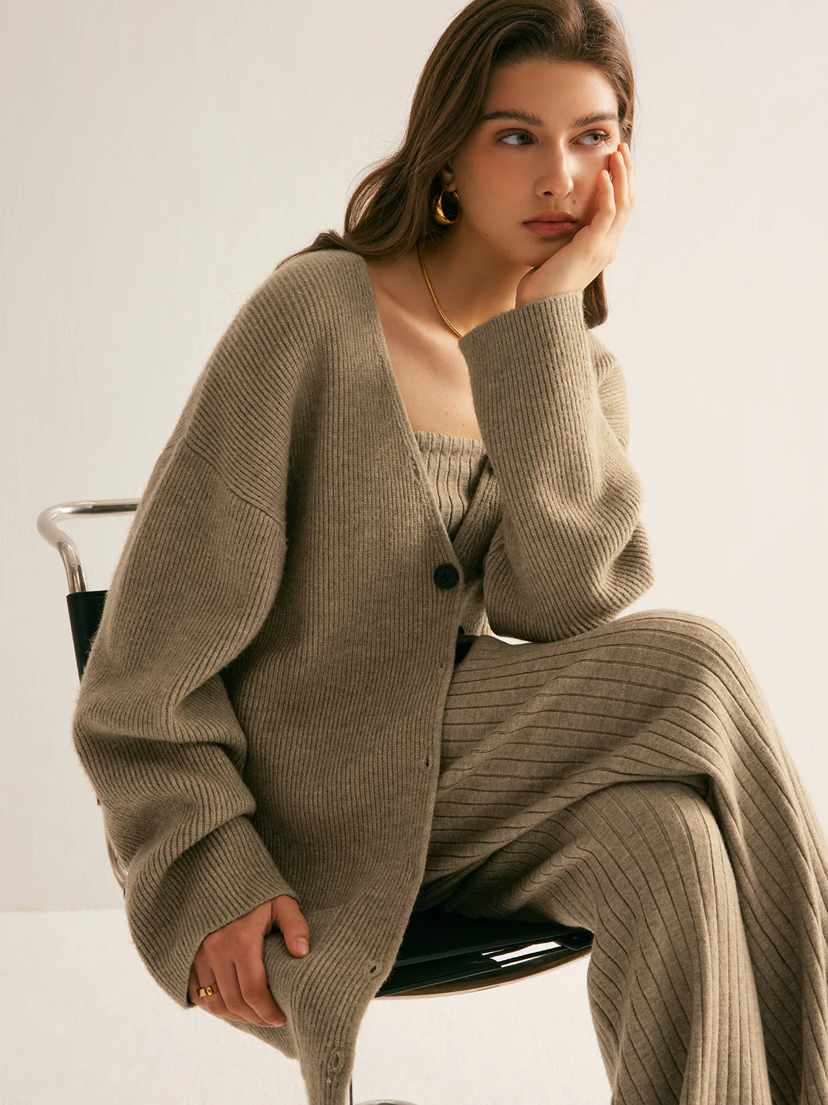 Oversized Wool-Blend Turtleneck Cinched Knit Top