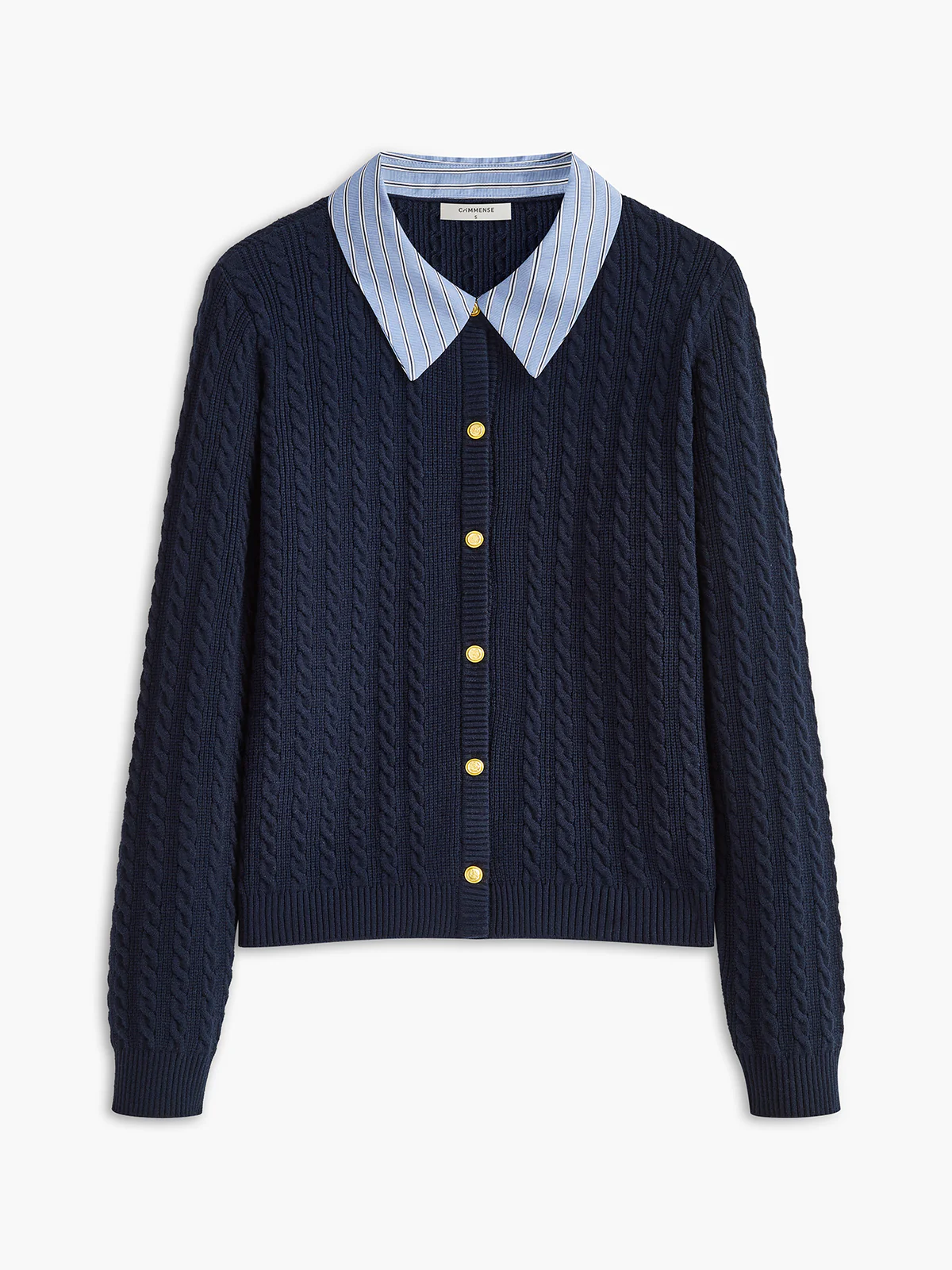 Oversized Geometric-Pattern Crop Knit Outerwear