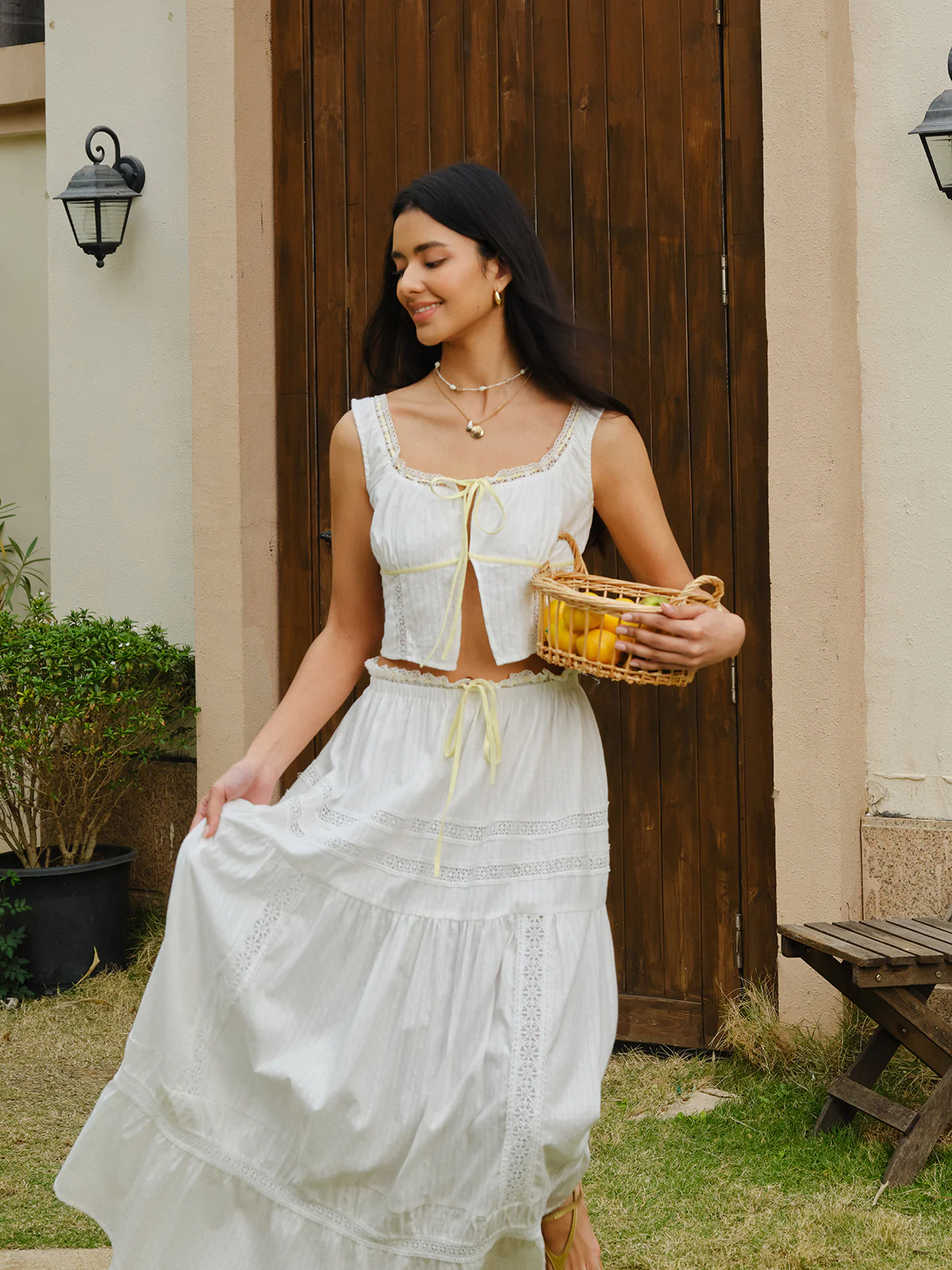 Embroidered Lace Trim Skirt Set