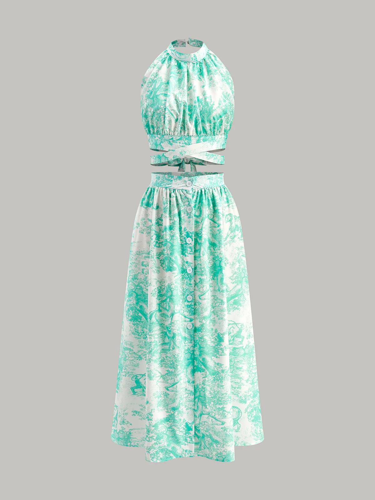 Halter Neck Backless Button-Front Skirt Set