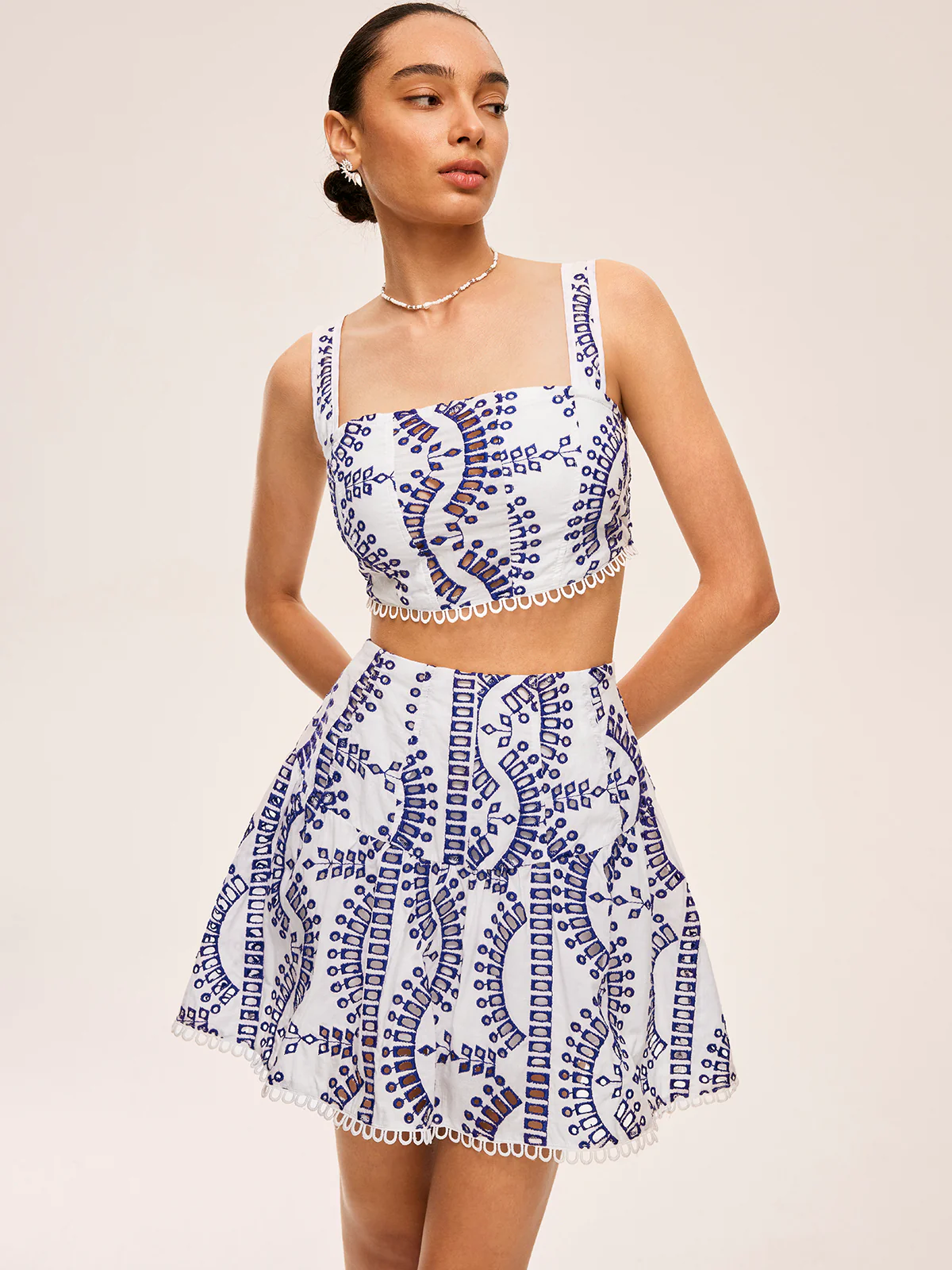 Cotton & Linen Scalloped Trim Skirt Set