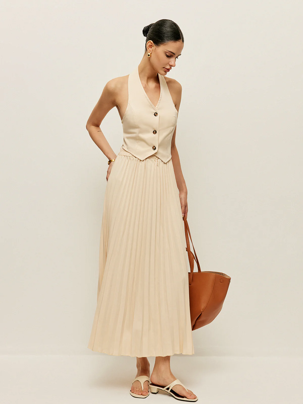 Backless Halter Pleated Skirt Set