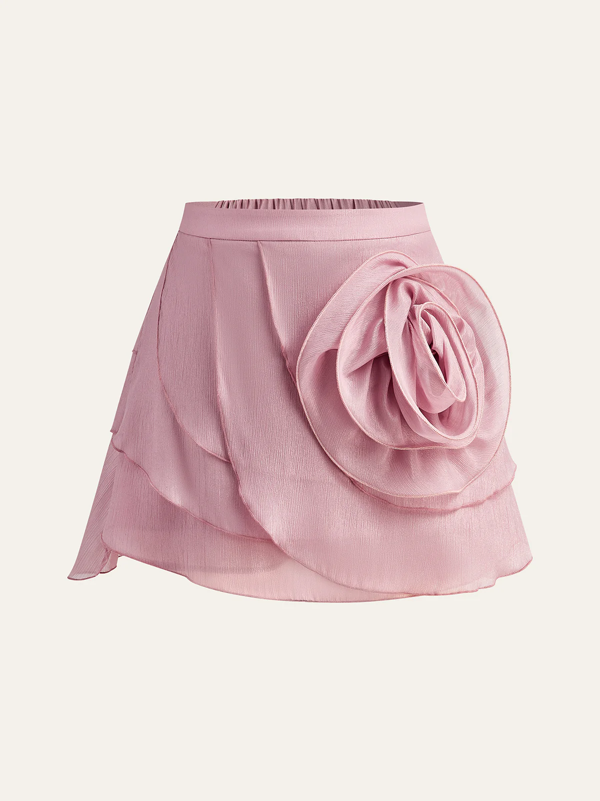 Semi-Sheer Chiffon Draped Skort With 3D Rosette