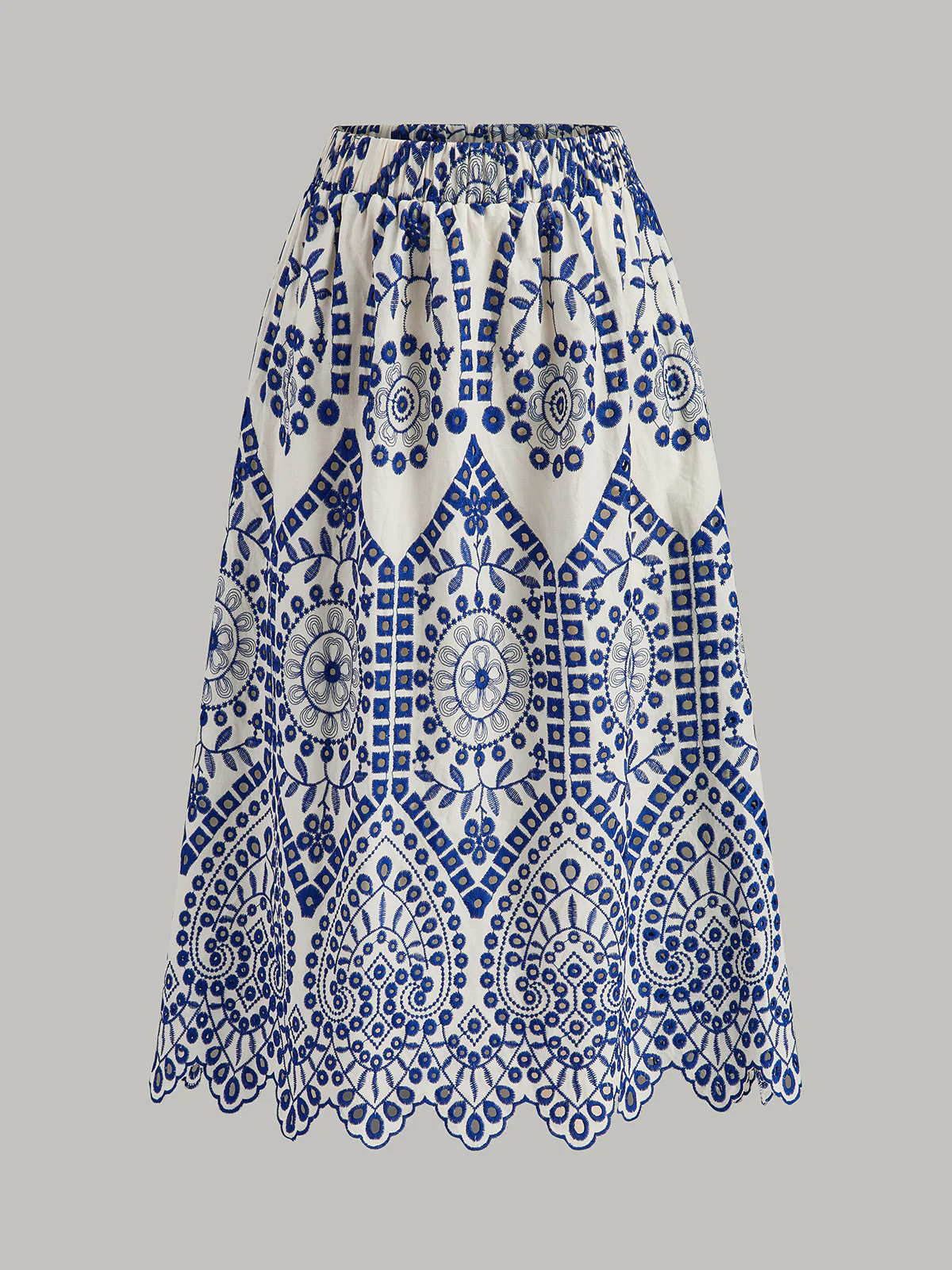 Cotton Embroidery Scalloped Hem Elastic Waistband Skirt
