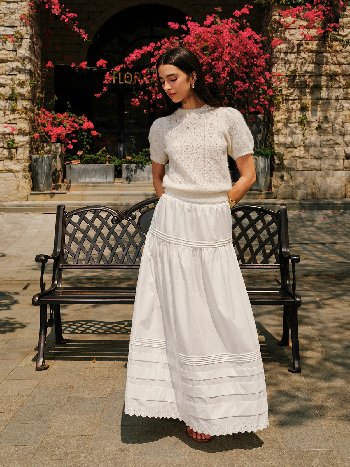 Eyelet Pattern Maxi Skirt