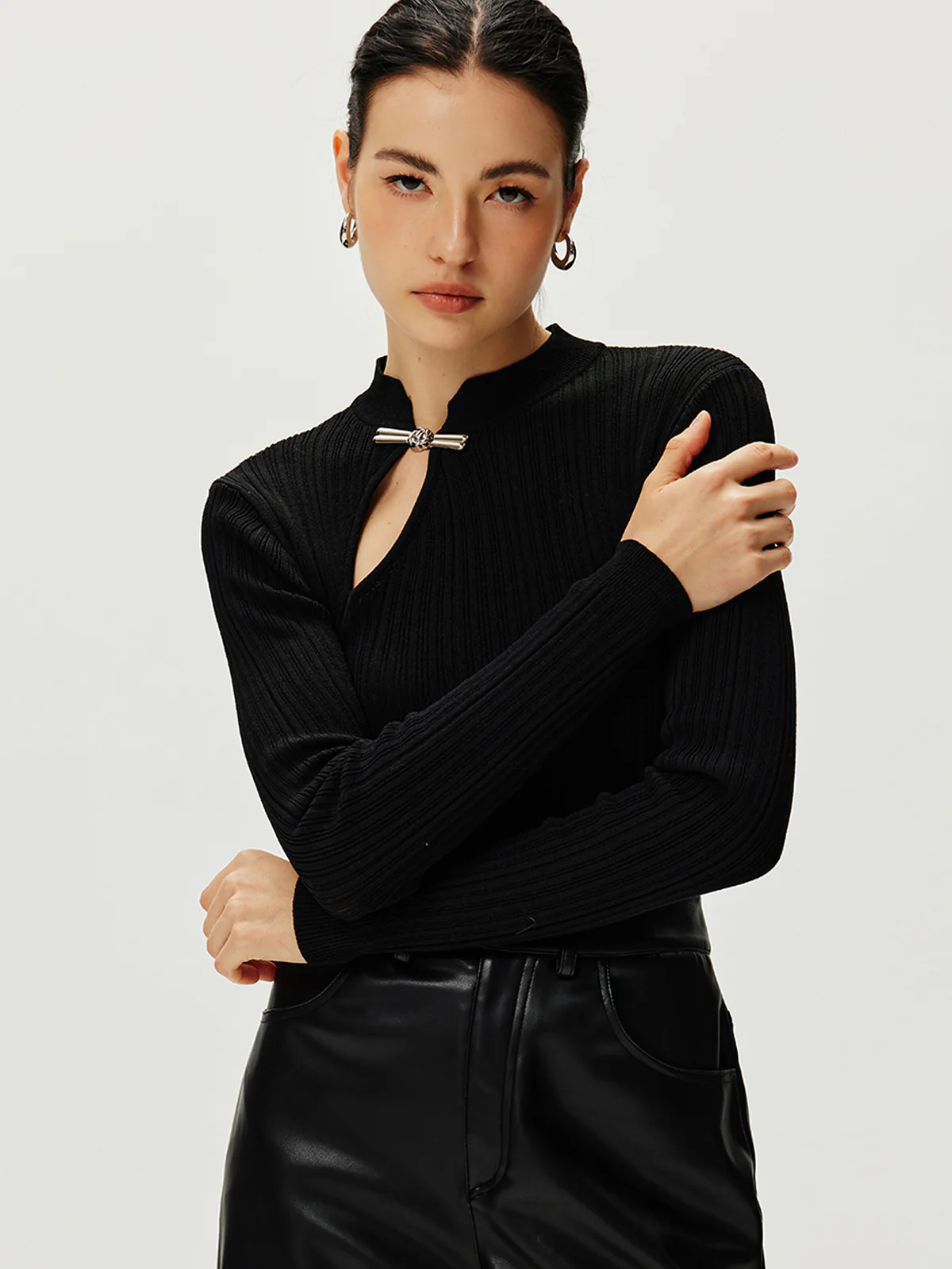 Ribbed Metal Knotted Sweater