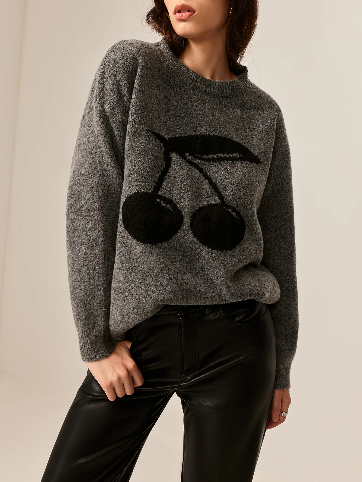 Cotton Blends Cherry Printed Pullover Sweater