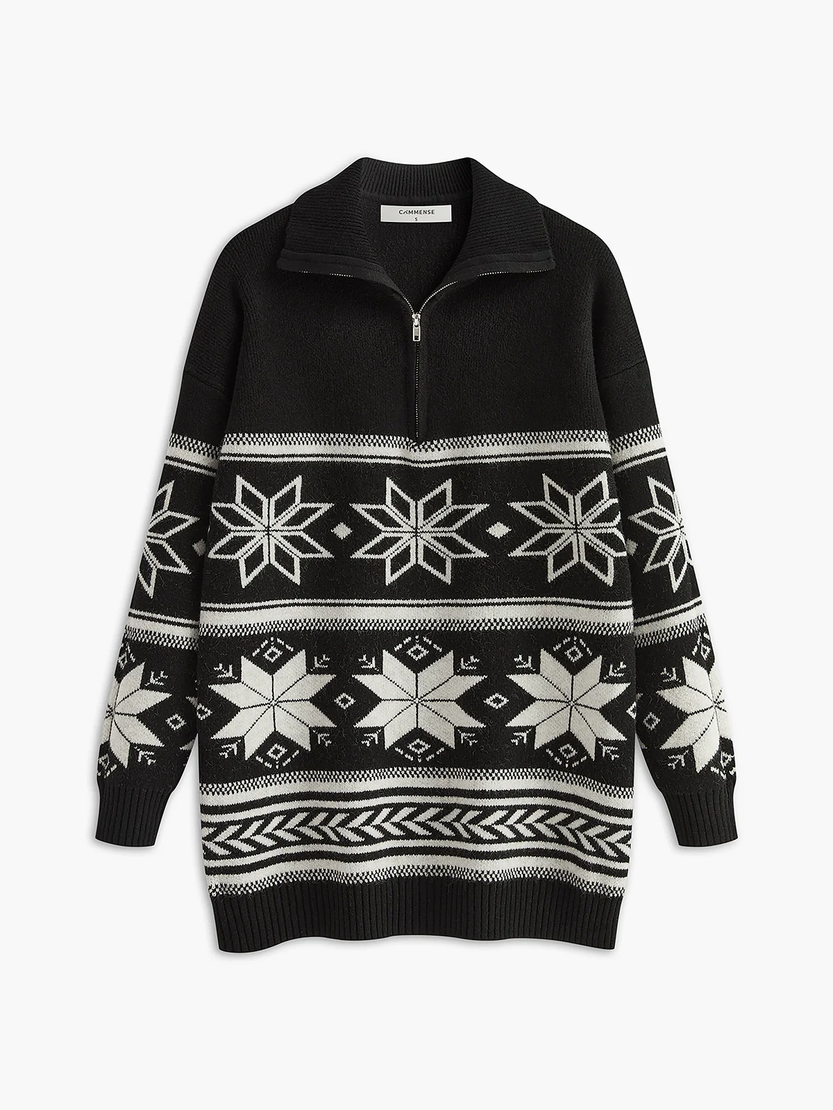 Jacquard Zipper Lapel Sweater